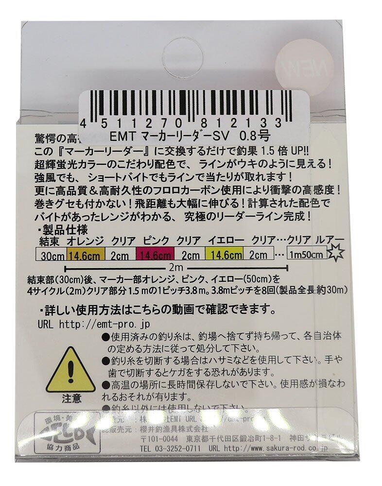 イーエムティー(EMT) リーダー マーカーリーダー ショートバージョン フロロカーボン 3.5m×8 各種