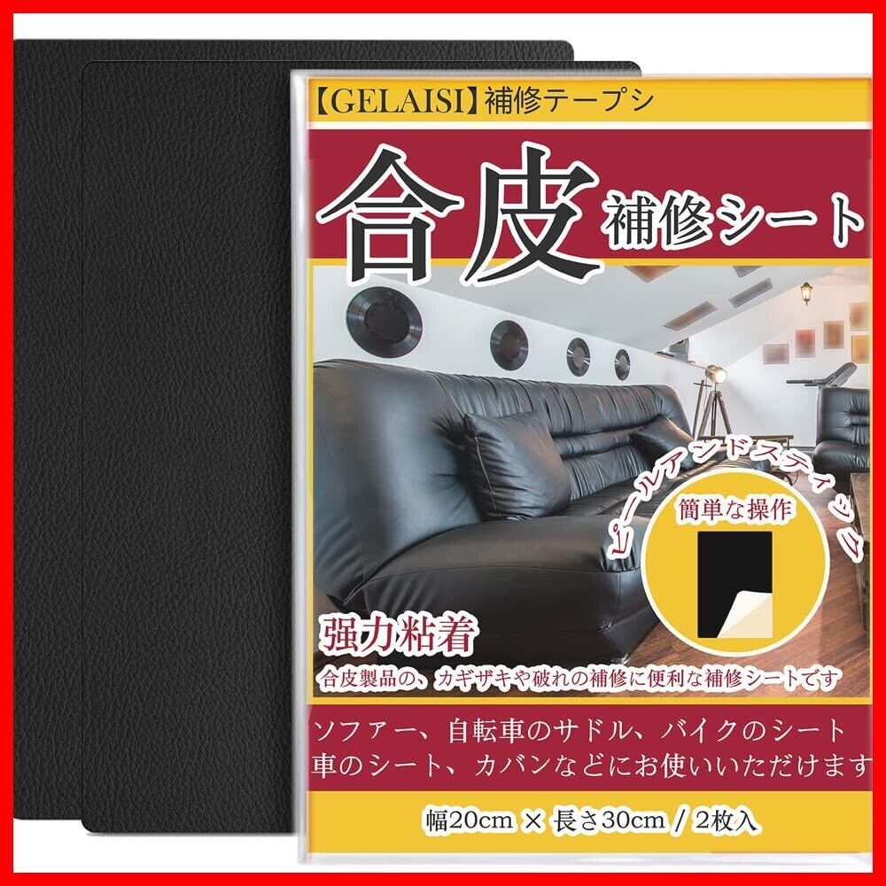 合皮補修シート20*30cm ソファー補修テープシールタイプ カバン 椅子 バイク シート財布家具革補修(2個セットA4サイズブラック)
