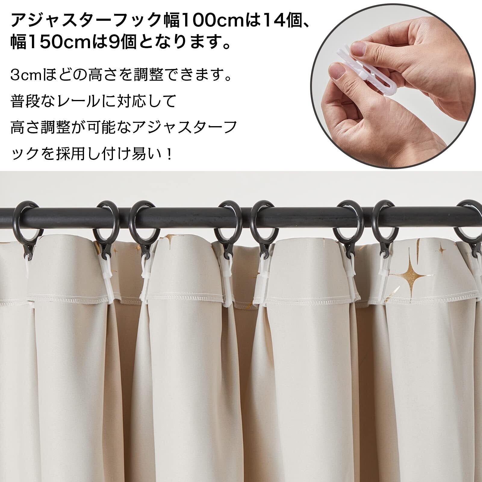 【注意・付属品】:アジャスターフックが付いています。幅100cmは14個、幅150cmは9個となります。(タッセル付きません、ご注意ください。)