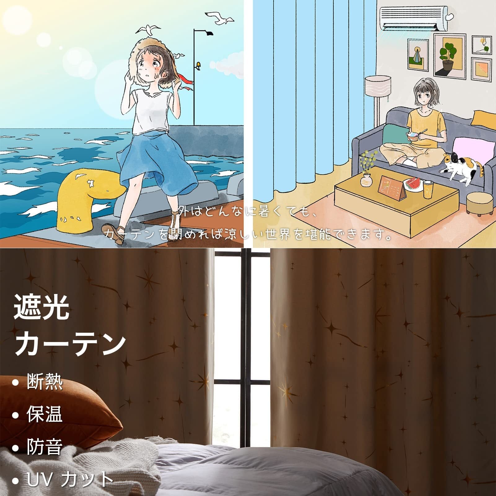 カーテン 遮光 おしゃれ 星柄 箔プリント 遮光カーテン 110cm丈 2枚組 ベージュ 小窓 カフェカーテン 省エネ 断熱 寝室 防音カーテン 既成 カーテン 断熱カーテン