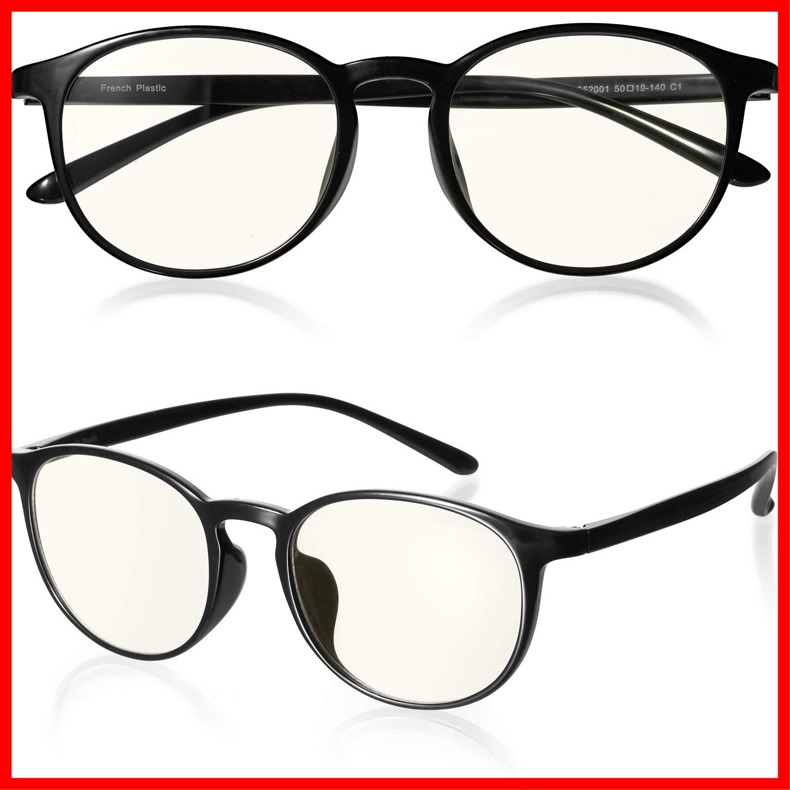 [ROTAKUMA] ブルーライトカット メガネ PC眼鏡 パソコン用 JIS規格40% UVカット99.9% 超軽量14g ボストン型 おしゃれ 紫外線カット メンズ レディース ユニセックス 度なし 伊達めがね (ブラック) | hananoki