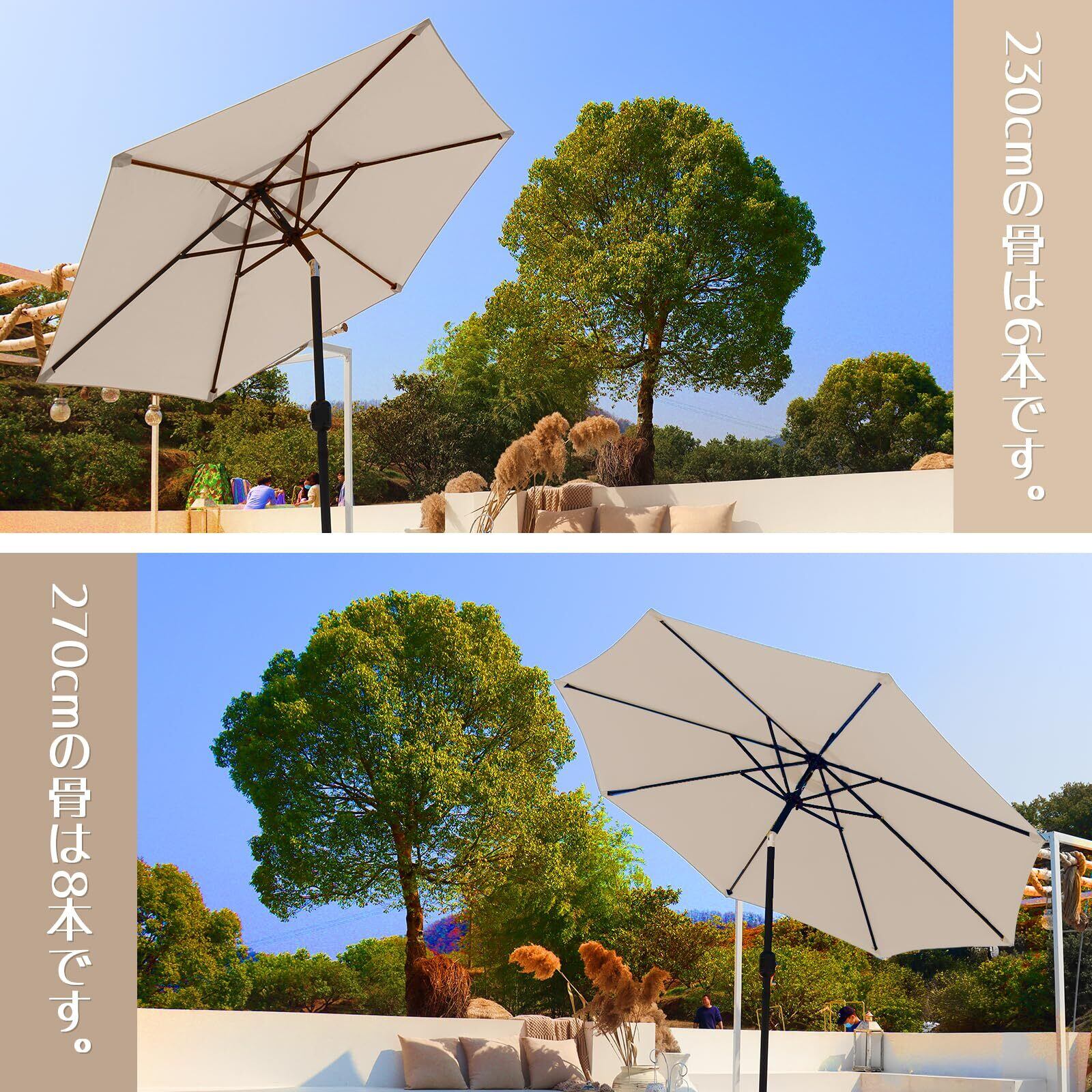 SUNNY GUARDガーデンパラソル 直径210/230/270cm 撥水加工 アウトドアパラソル アルミ製