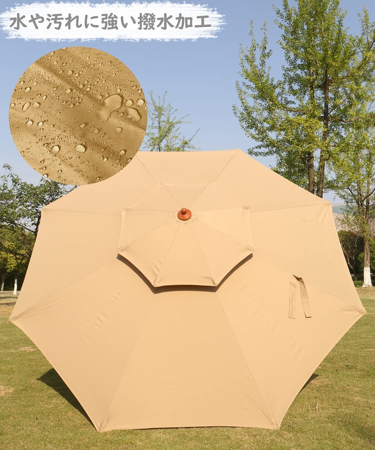 UVカット:最高水準UPF50+のUVカット生地を使用。真夏の強い紫外線もしっかりカットします。パラソル上部に風通しのいいベンチレーション付き、通気性も抜群です。しっかりとしたポリエステル生地で日差しを遮ります