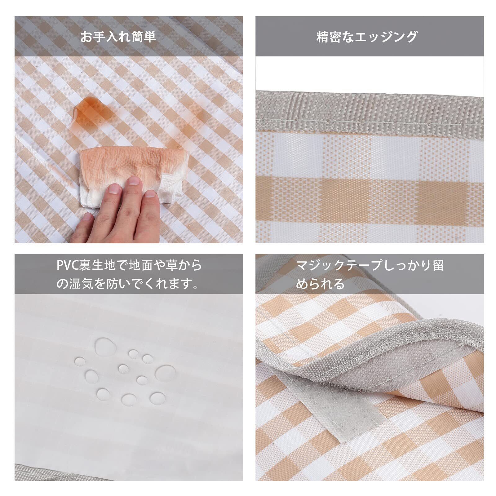 優れる素材:表面:オックスフォード布生地を採用、起毛素材と違い、汚れが付着しづらい防水生地を採用し、手入れも便利です。汚れても簡単に拭き取ることができます。 裏面:裏面は防水PVC素材で地面や草からの湿気を防いでくれますし、防水防湿で、通気性、耐磨耗性にも優れて引っ張っても割れないです