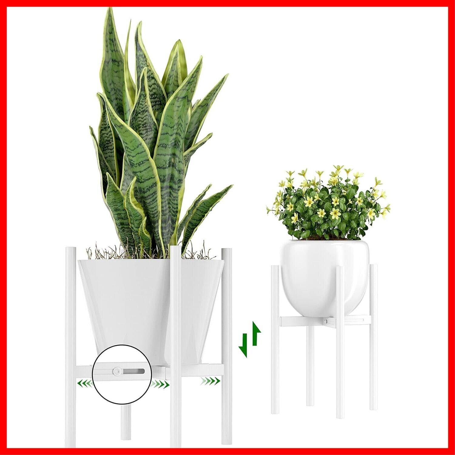 【伸縮可能な幅】外径20cm-30cmの多くのポットサイズに適合する植物ホルダーを 1 つ用意し、付属のツールでプランター幅にフィットするようにスタンドレールを引き出します。屋内用金属植物スタンドは、異なるサイズの植木鉢を置くことができ、植物が成長するにつれて 2 つの高さオプションを提供します。