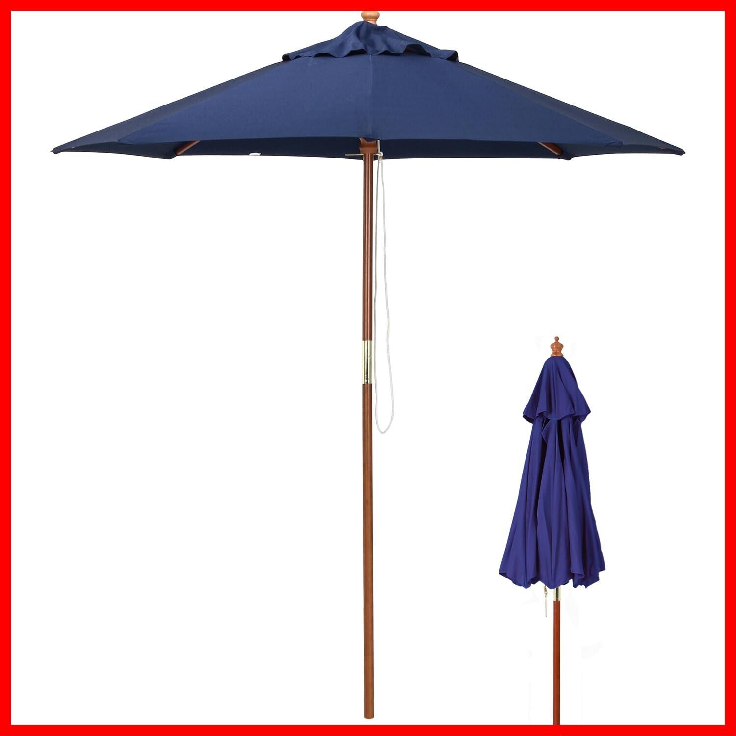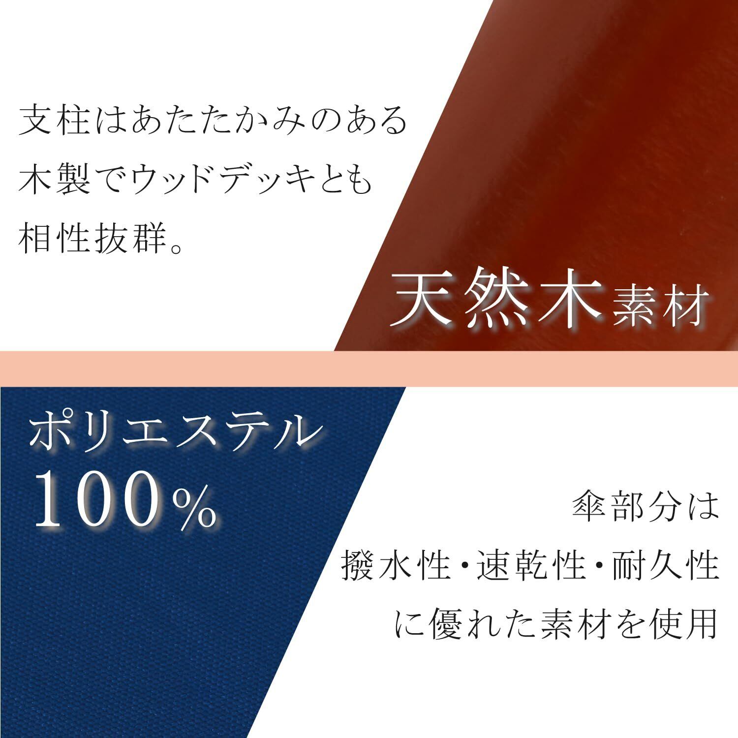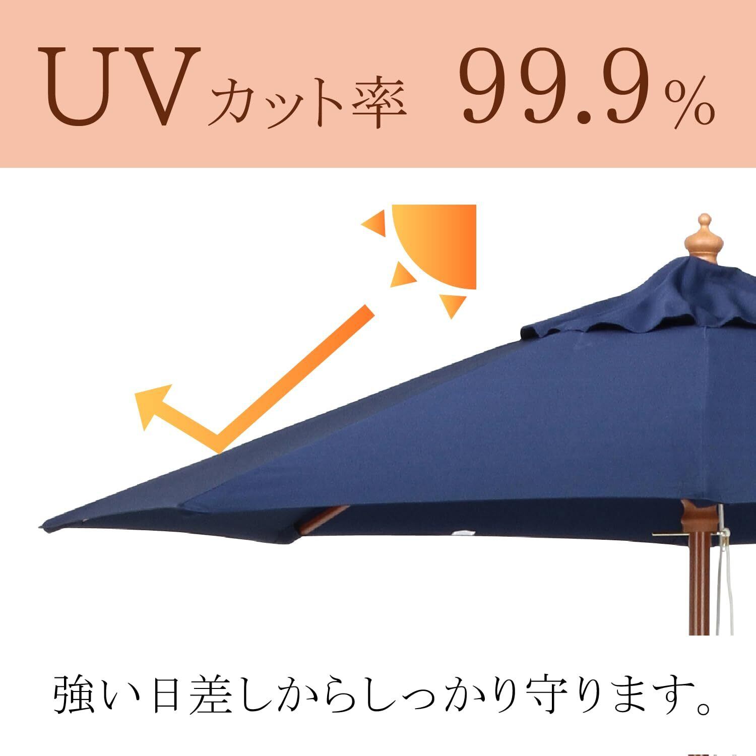 不二貿易 ガーデンパラソル 展開時最長辺210cm UVカット率99.9% 折りたたみ 大型 木製 ネイビー 60158
