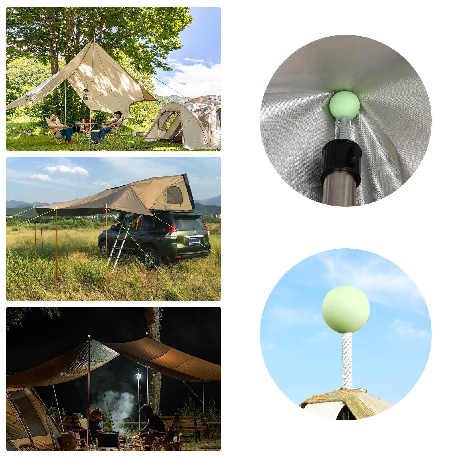 【優れた安定性&夜光機能】厚さのあるトップとなっているため安定性が良く圧力をかけても左右に揺れる心配がなく、風にあおられてもガイロープやグロメットがピンから抜ける心配がないです。日中は太陽光を吸収するか、長時間光にさらされる必要があり、夜は光ります。