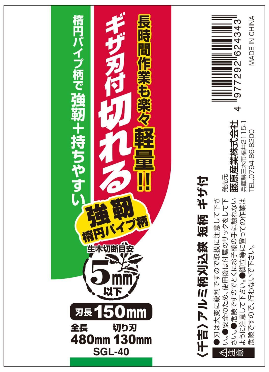 千吉(Senkichi) アルミ柄刈込鋏 短柄 ギザ付 刃長150mm 切断能力約5mm SGL-40