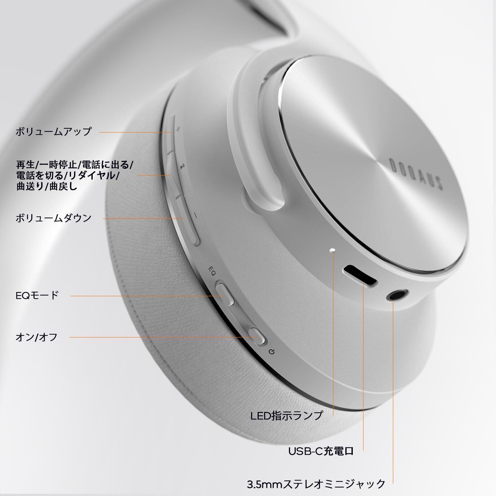 DOQAUS(ドカアス) ヘッドホン Bluetooth5.3 ワイヤレスヘッドホン 最大80時間連続再生 3EQサウンドモード オーバーイヤーヘッドホン マイク内蔵 有線対応 密閉型 メモリーフォーム 耳に優しい 携帯・パソコン・ウォークマン対応 LIFE3 (アイスグレー)