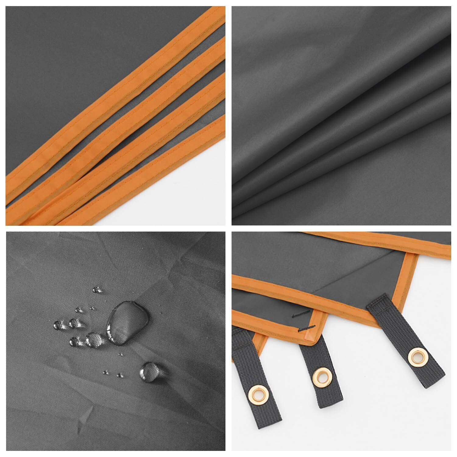 【両面防水加工】生地には高耐水加工が施されております。このマットはPU3000MM相当の耐水レベルです。グランドシートは地面からの湿気も防ぎます。また、雨天時にもテントが濡れるのを防ぎます。