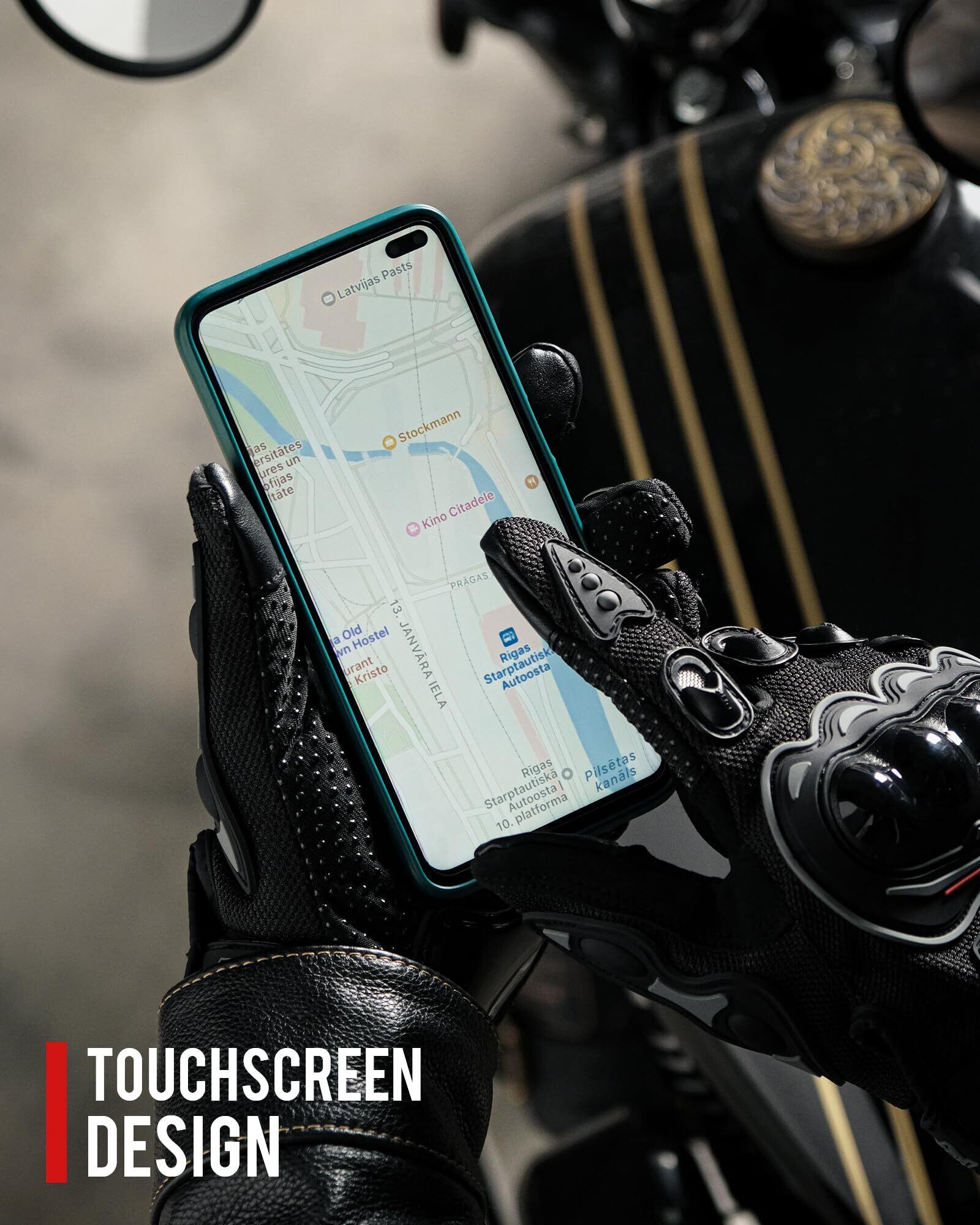 【タッチスクリーン対応】IRON JIA'Sのバイク手袋は、手にしっかりフィットし、タッチスクリーンも対応できます。手袋を外さずにスマホの操作ができるので、ナビアプリや音楽プレイヤーを操作する際にも便利です