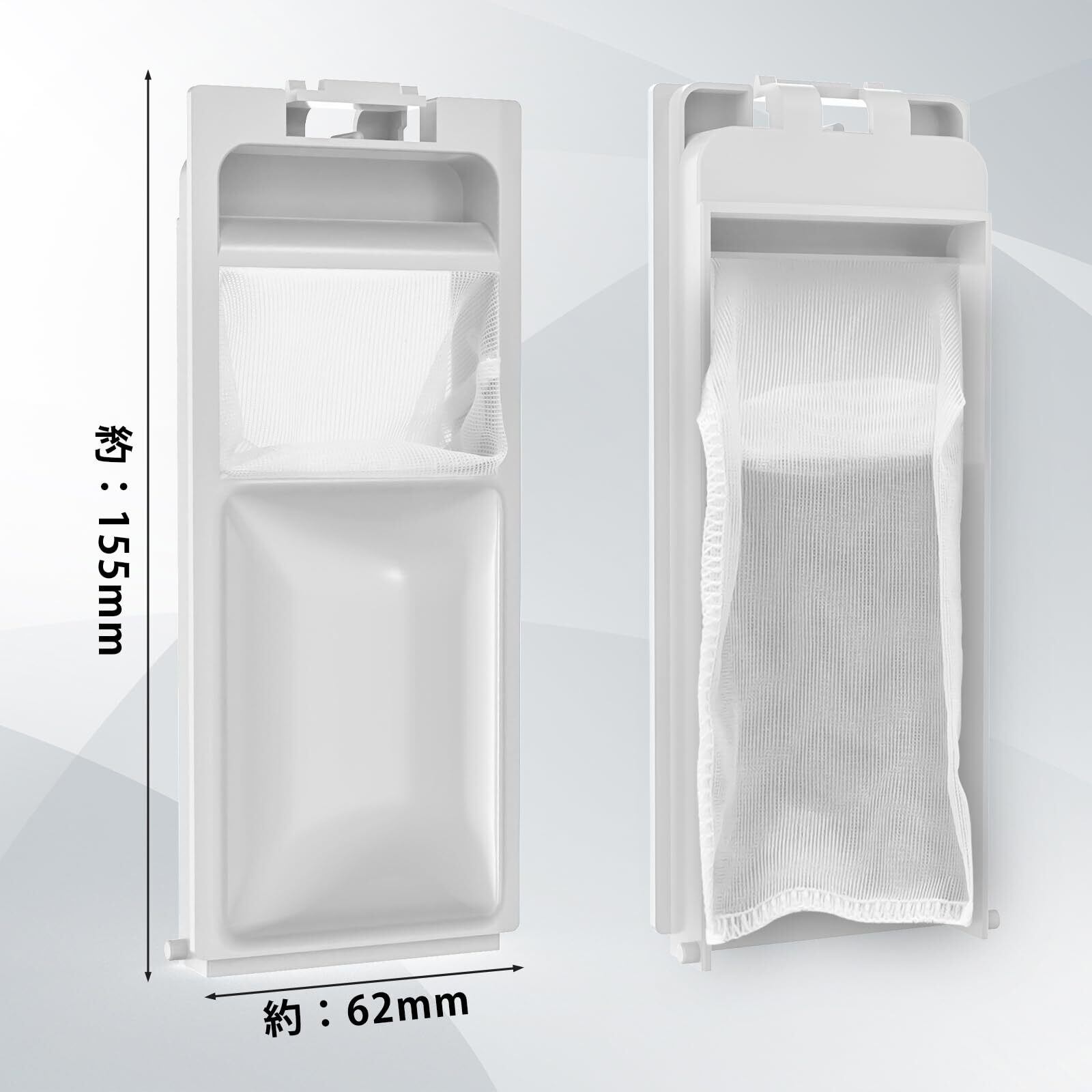 【寸法】製品寸法:約155mm*約62mm ※ 洗濯機のフィルターをご購入の際は、必ず本体型番やフィルターの形状寸法と仕様などをしっかりとご確認ください。