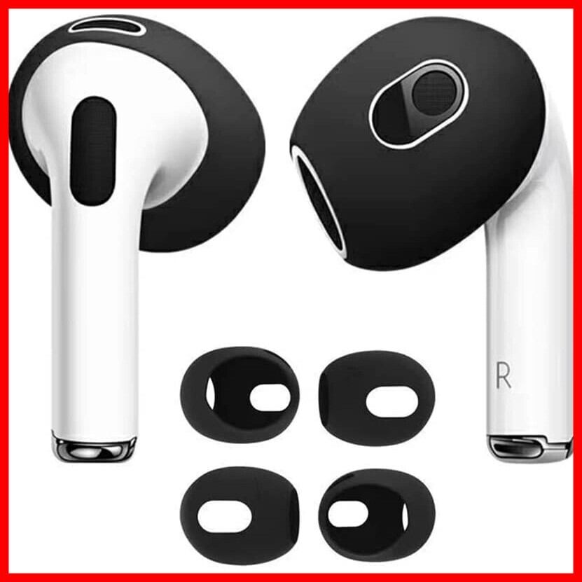 【4個入り】AMAPC for AirPods 3 イヤーピース 2023 シリコーン製イヤホン カバー airpods 3 落ち防止イヤーピース分離可能 遮音性/フィット感/脱落防止 ブラック