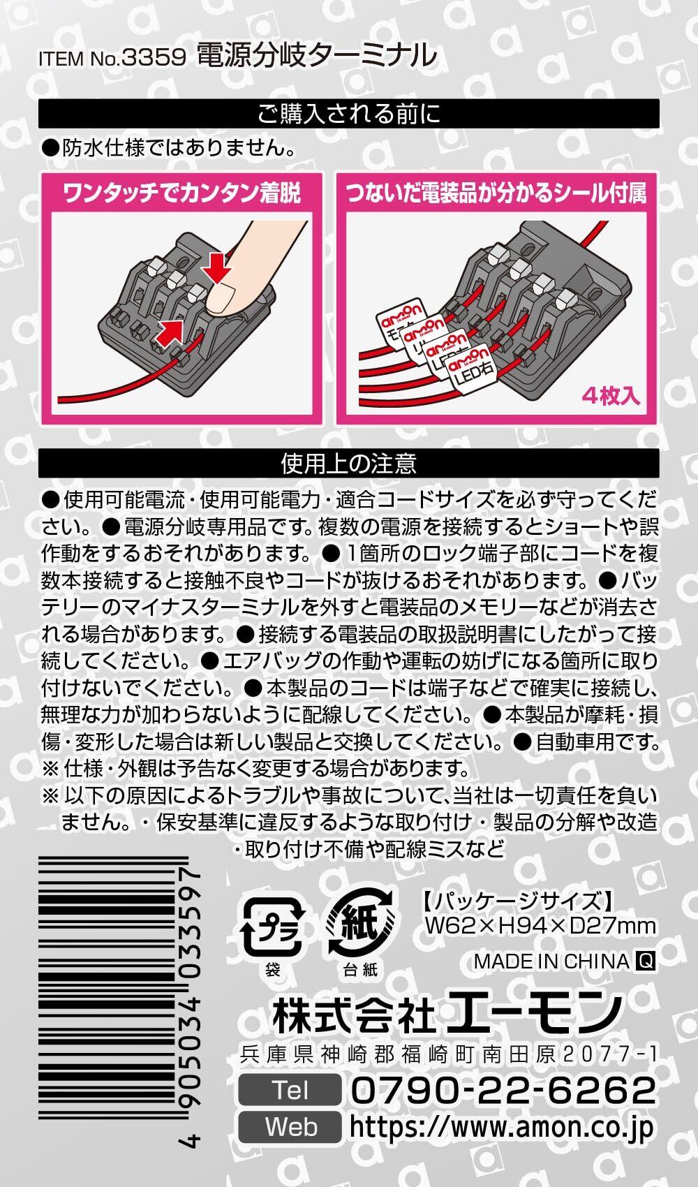 エーモン(amon) 電源分岐ターミナル DC12V・120W以下/DC24V240W以下 3359 黒