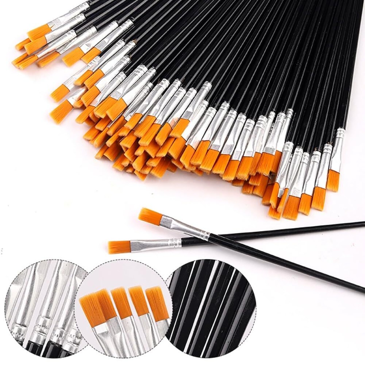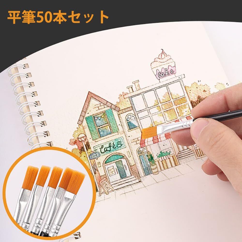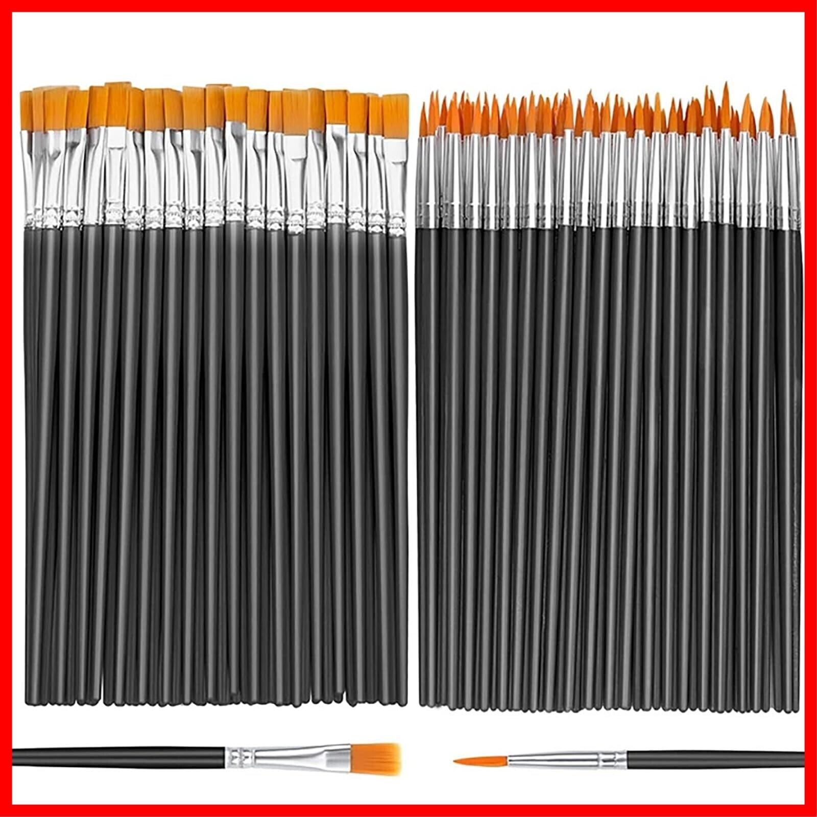 平筆 勾線筆 絵筆 100本セット 画材筆 水彩筆 プラモデル 塗装 油絵 水彩画 フィギュア 筆 (勾線筆+ 平筆(ブラック))