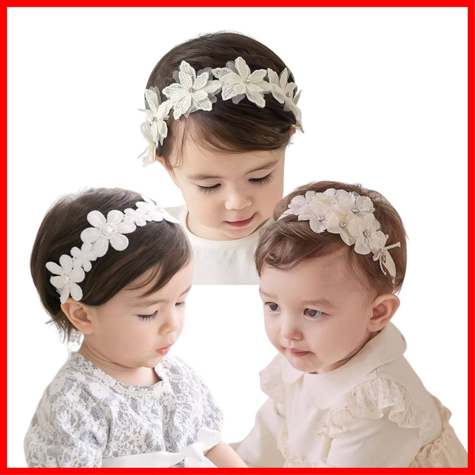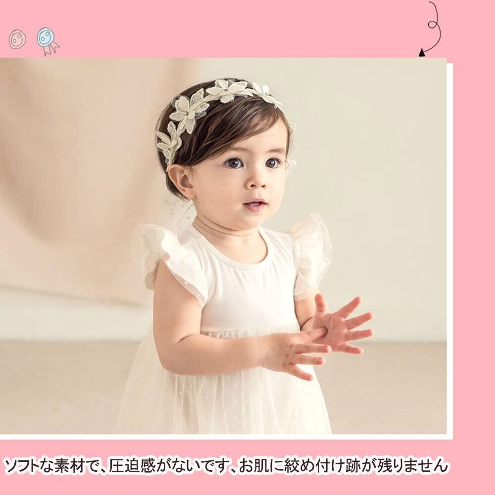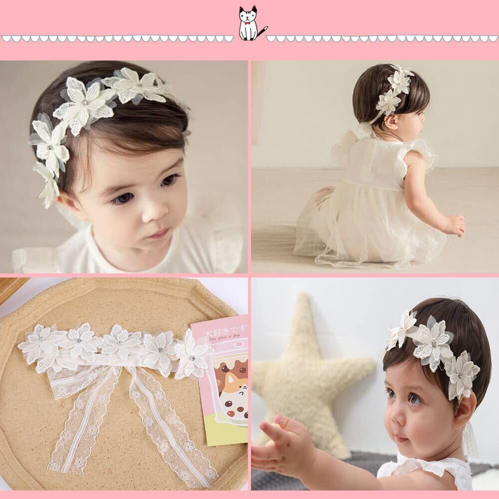 DFsucces ヘアバンド ベビー ゴ ヘアアクセサリー 髪飾り レースバンド ヘッドドレス 女の子 新生児 出産祝い 誕生日 記念撮影 お祝い 結婚式 3点セット (ホワイト) | hananoki