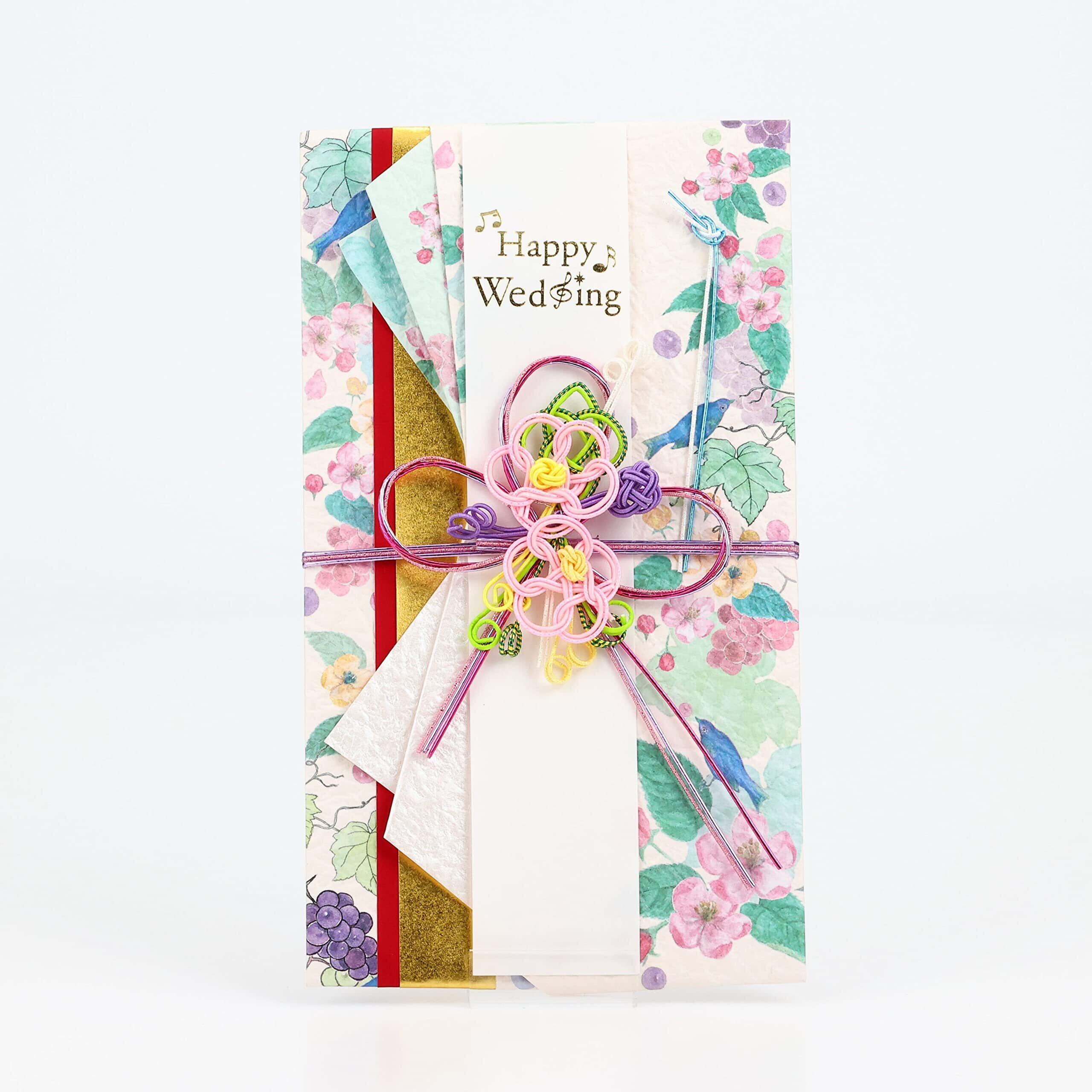 幸せの青い鳥や海外では愛の実を結ぶと伝えられるぶどうの入ったデザイン金封。3万~5万目安の新札で10万円まで入ります。