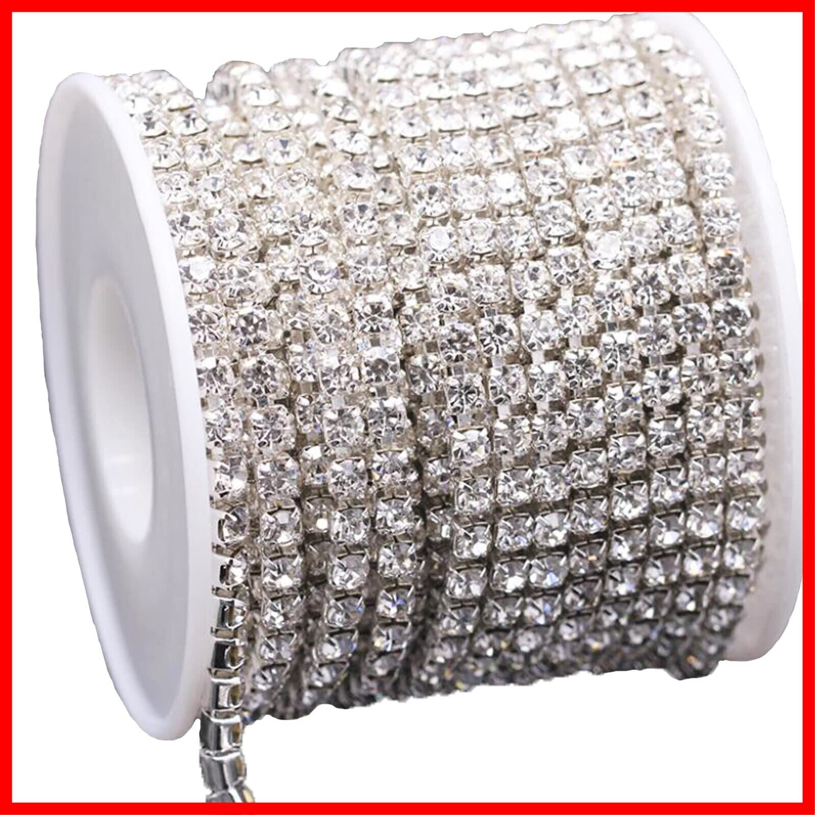 サムコス ダイヤストーンチェーン クリスタルチェーン 1巻セット 巻き クリスタル 基礎パーツ デコレーション アクセサリー DIY 手芸 手作り用品 衣類 帽子 シルバー 2mm 10M
