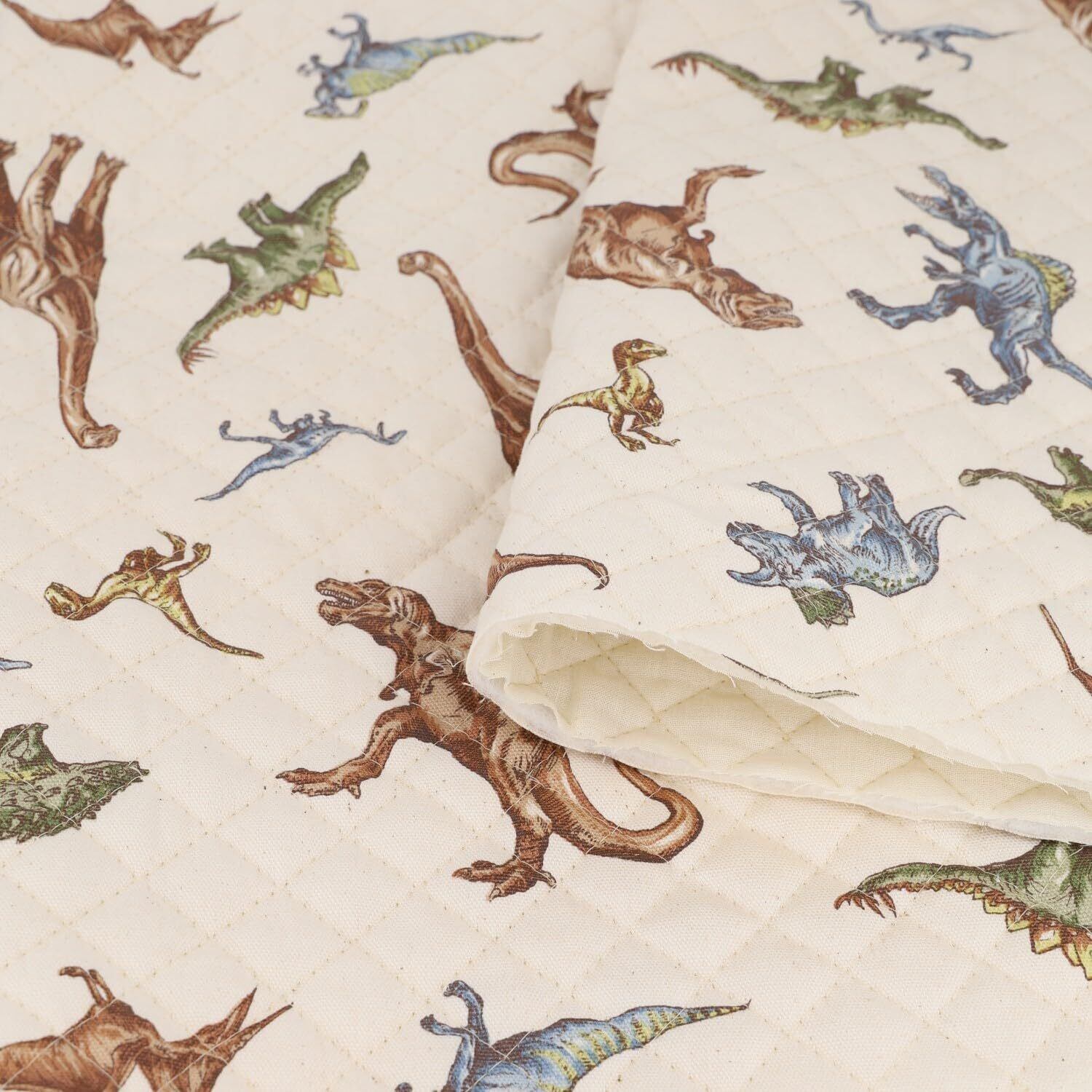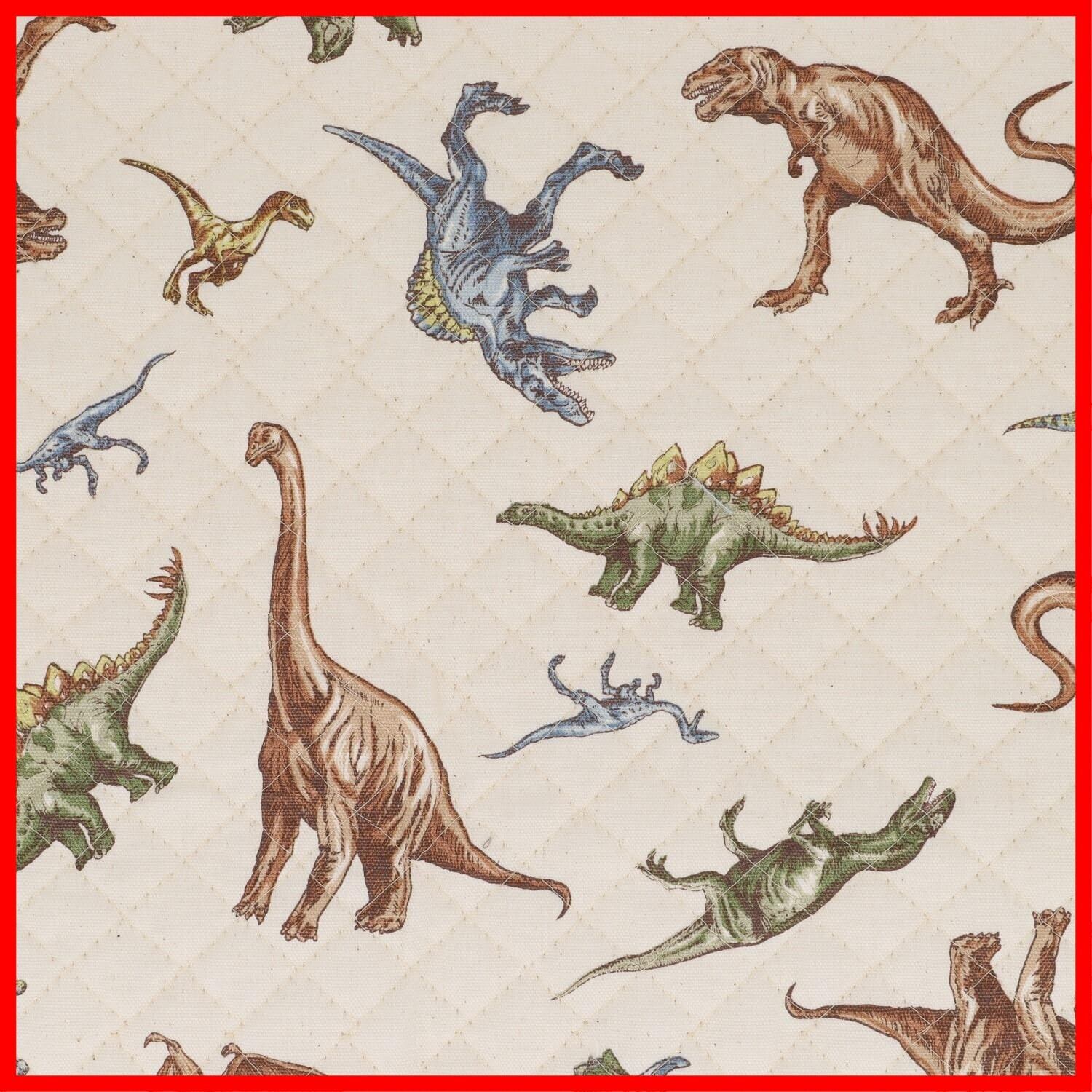 男の子 におすすめのキルティング 生地 50cm カットです。 子供用 通園バッグ や 巾着袋 などの 入園グッズ 作り ・ 入学準備 、 エコバッグ や 布 小物 制作 にもおすすめです。人気のティラノサウルスやトリケラトプスがかっこいい、リアルな恐竜柄です。