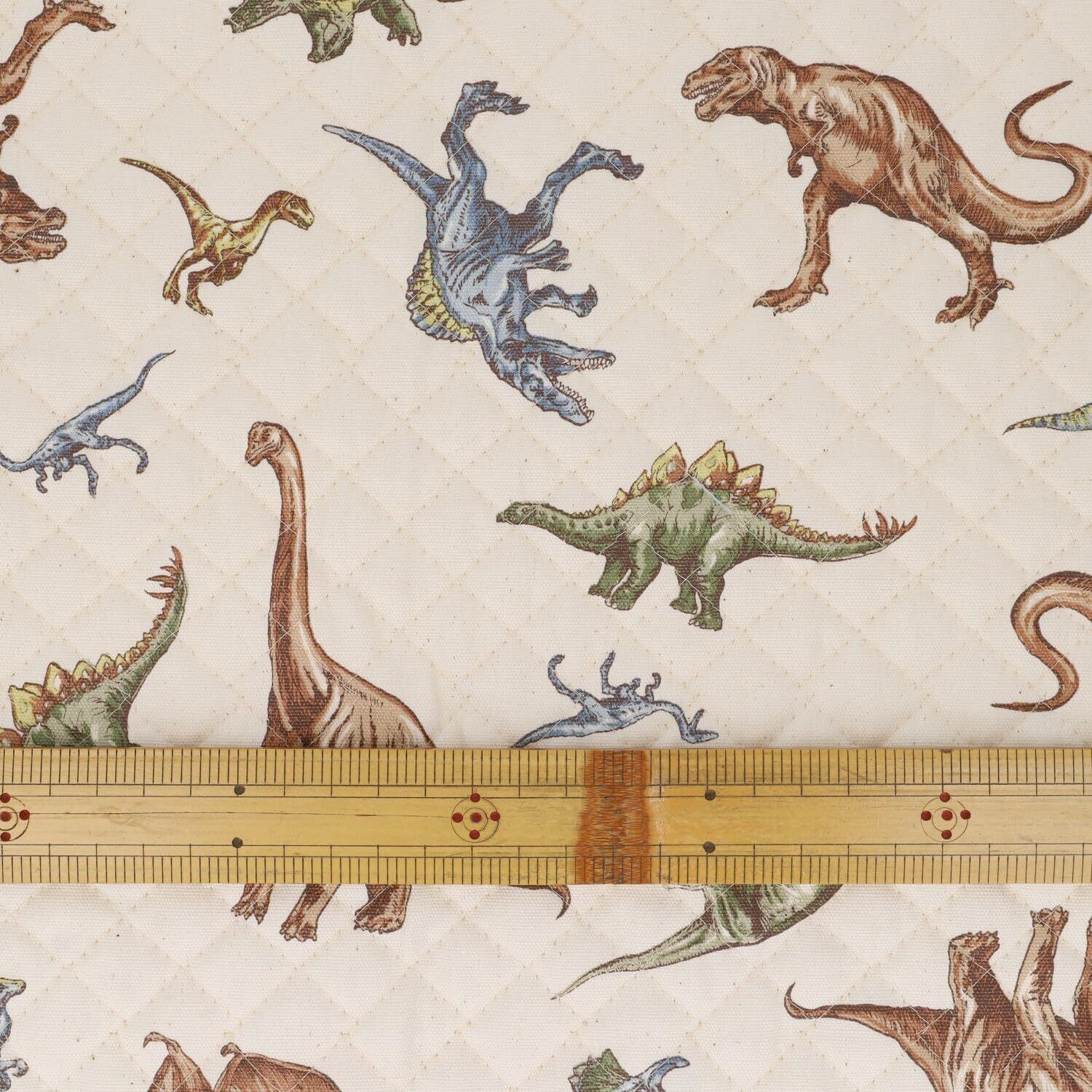 KIYOHARA キルティング 生地 ダイナソーパーク 106cm巾×50cmカット オフホワイト レッスンバッグのレシピ付き MOW152-50