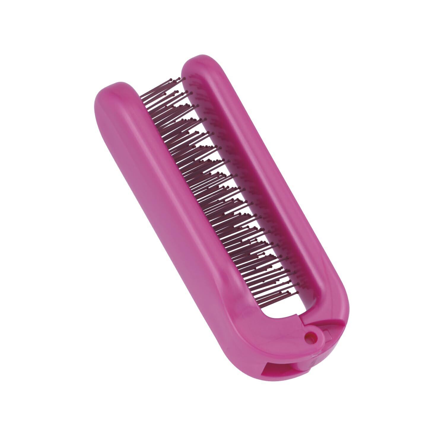 髪がからまりにくいU字植毛機構で、髪にも地肌にもやさしい折りたたみのヘアケアブラシ。毛の硬さソフト・ピンク。