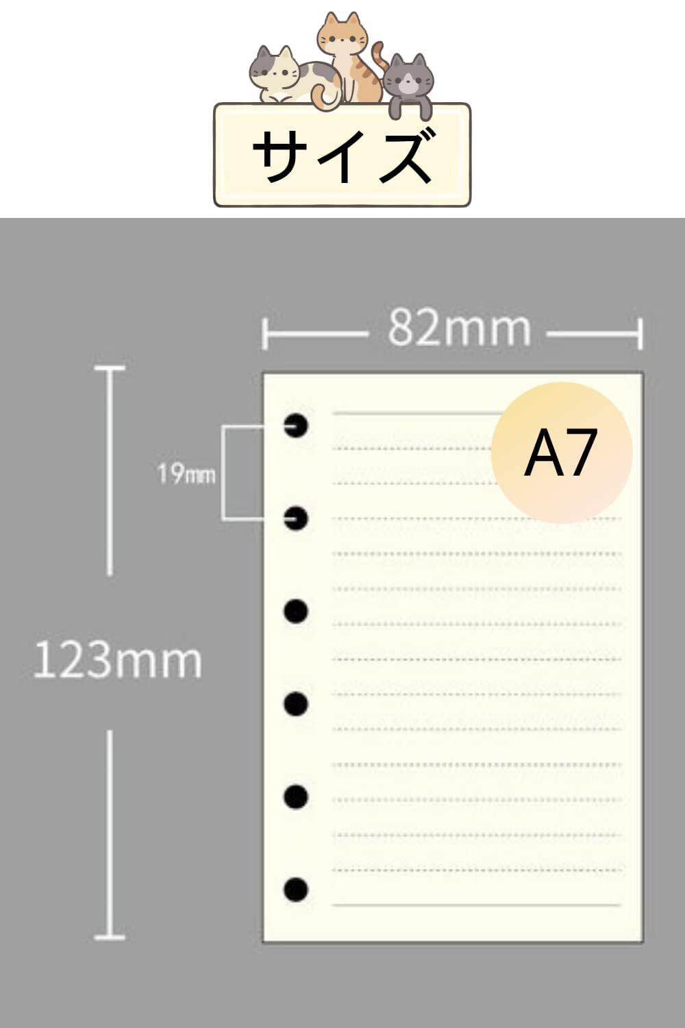【サイズ】A7(W82×H123mm)7㎜横罫14行 6穴タイプ 穴直径:5㎜ 穴間隔:14mm。
