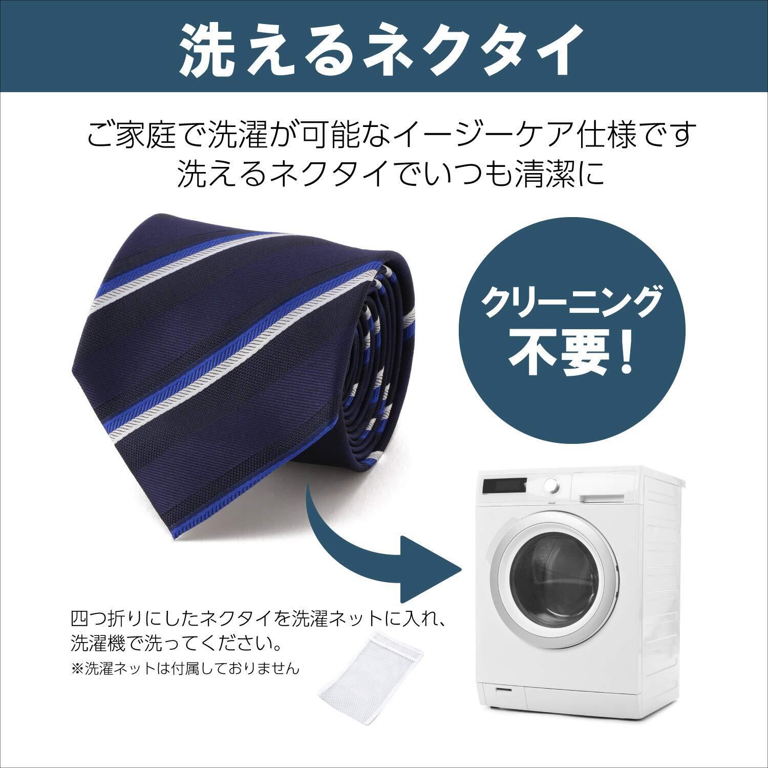 急な来客や会議などネクタイの着用が必要なシーンがきても、見た目は普通のネクタイと変わらず結ぶ手間が無い為簡単に着用頂けます。