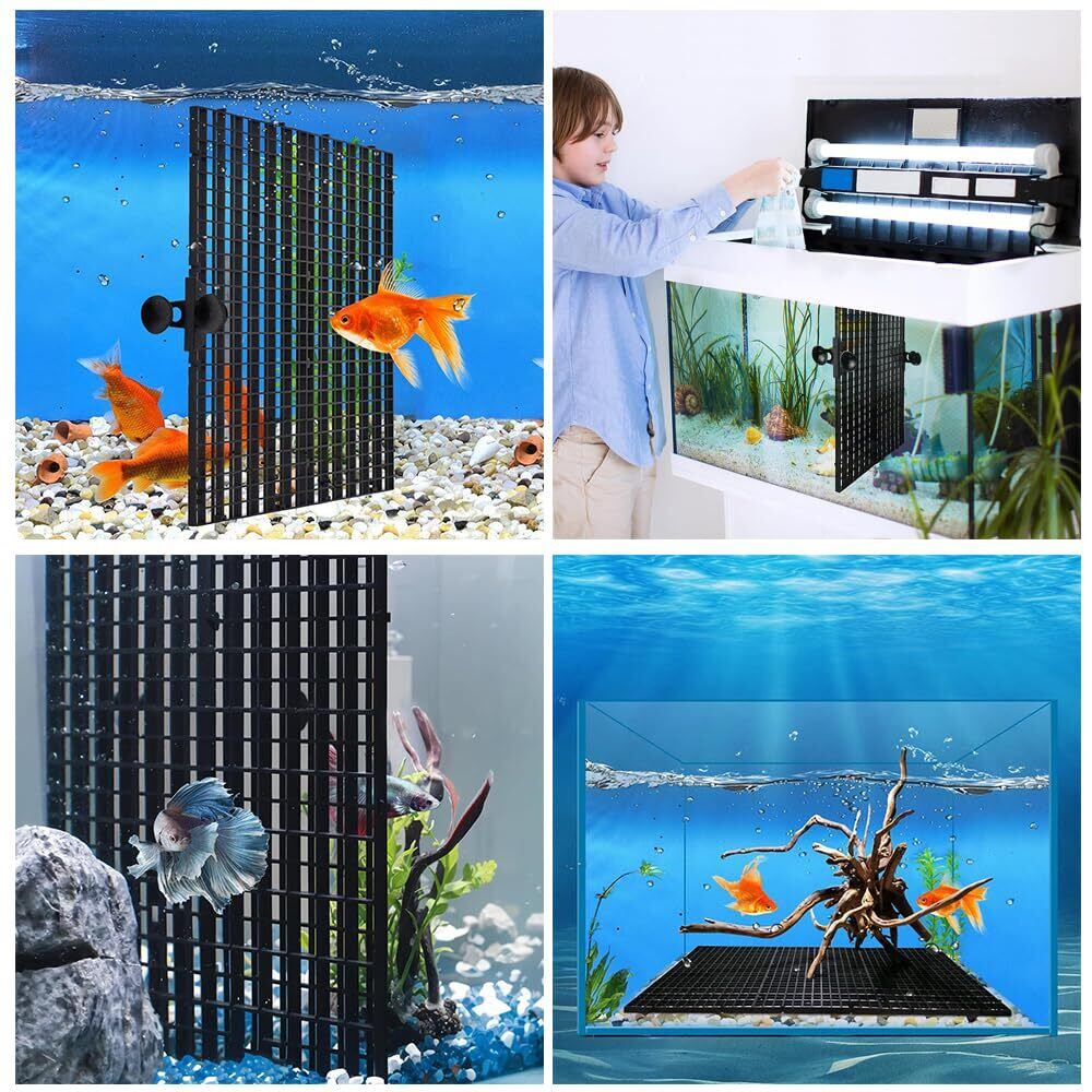 KALOLINNA 水槽仕切りセパレータ 4点セット ゴム吸盤付き 熱帯魚 分割 アクアリウム 飼育 水族館 網 隔離 魚 稚魚 爬虫類 鑑賞 (ブラック, 30cm×15cm) | hananoki