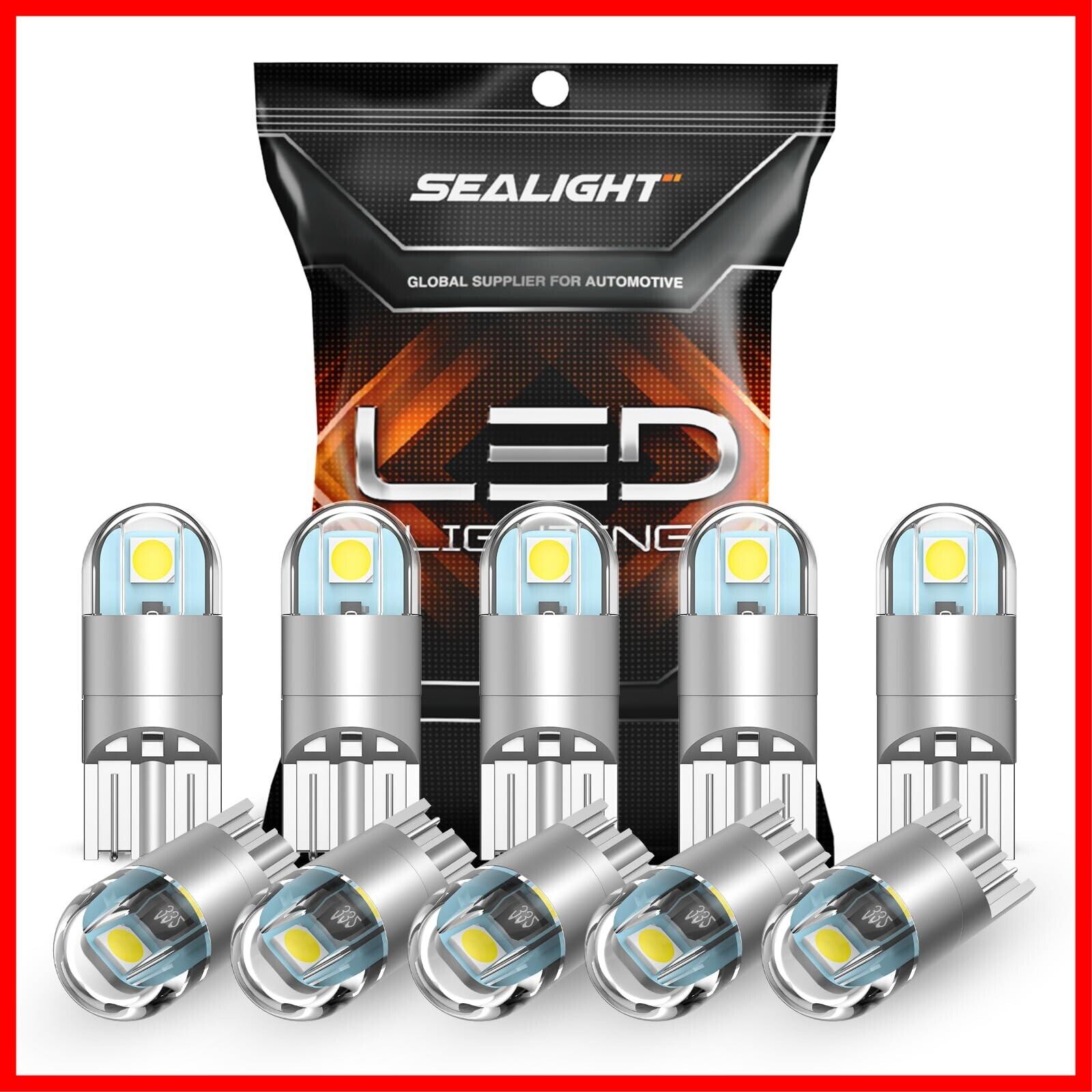 SEALIGHT t10 led ルームランプ ポジションランプ ナンバー灯 3030SMD 明るいLEDチップ 高輝度 6000K スモールライト ドームライト マップライト ドアライト 爆光 車検対応 無極性 50000時間寿命 168 2825 W5W 10個セット (ホワイト)