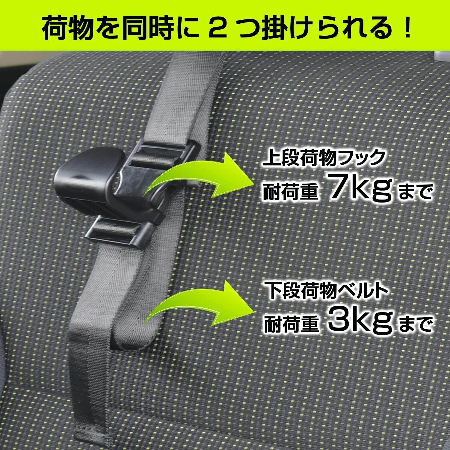 ヘッドレストに付けるだけ、荷物を固定し長さ調節ができるロングタイプのシートフックの2本セット。