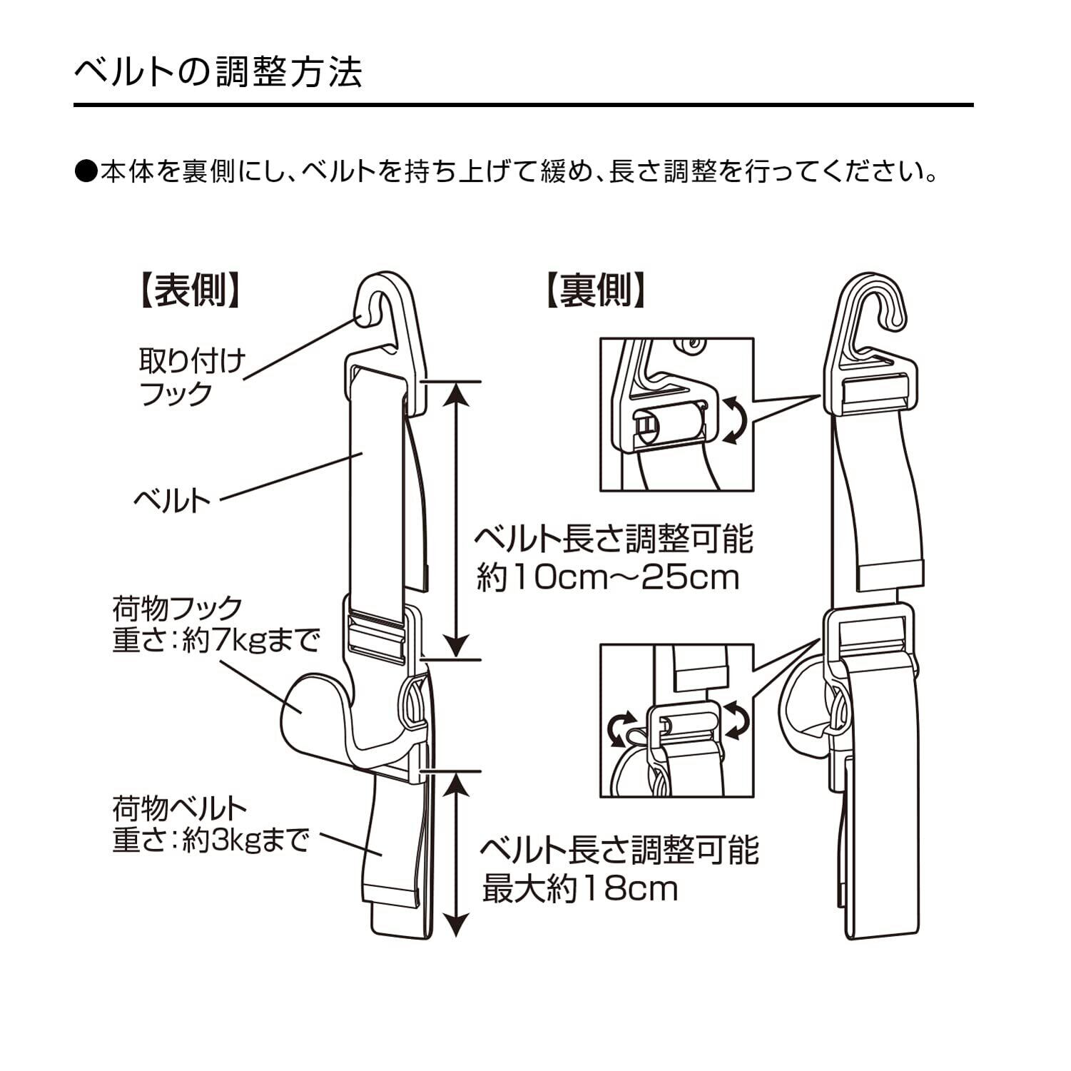 ●買い物袋やバッグなどを固定し、長さ調節ができる便利なフックです。