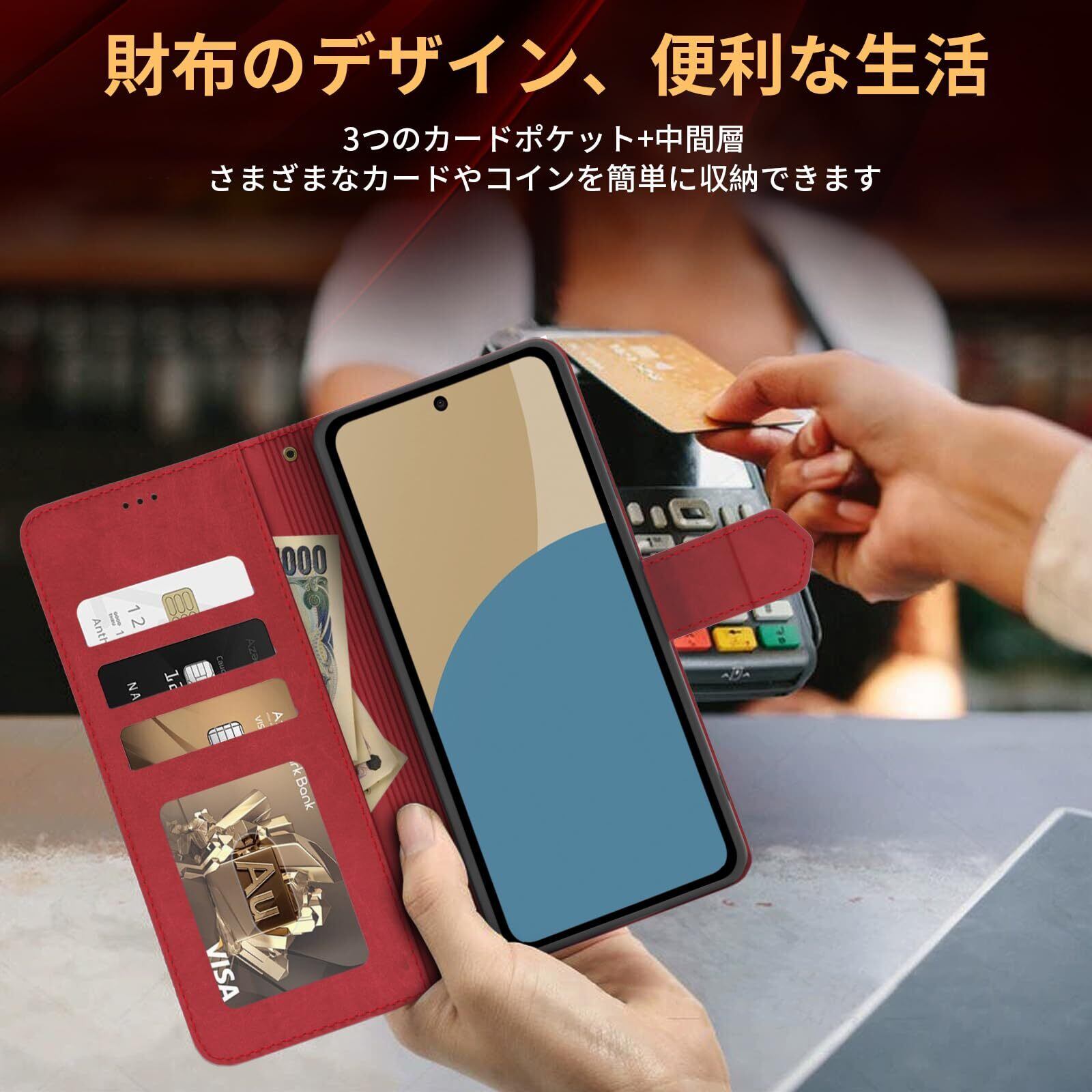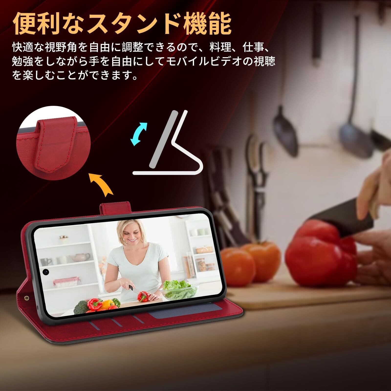 【スタンド機能&カード収納】横置きスタンド機能:横置きスタンド機能により、好きな角度で動画鑑賞や読書などを楽しめます。両手が自由になるのでとても便利です。動画鑑賞時にスタンドがないことを心配する必要がなくなり、スタンドとして他の物に頼る必要もなくなります。長距離列車、飛行機旅行、料理やフィットネスなどでの教育動画鑑賞など、多くのシーンに適用でき、とても実用的です。カード収納:携帯ケースの背面にはカードポケットが3つと紙幣用のフリーポケットが1つあり、ポイントカード、カード、紙幣、名刺、月間パス、運転免許証などを収納でき、旅行に便利です。SUICA/PASMO/ポイントカード/メモカードなどを収納でき、ちょっとした旅行には十分です。使わないという選択もできますが、その存在はあなたの体験をより便利にすることができます。