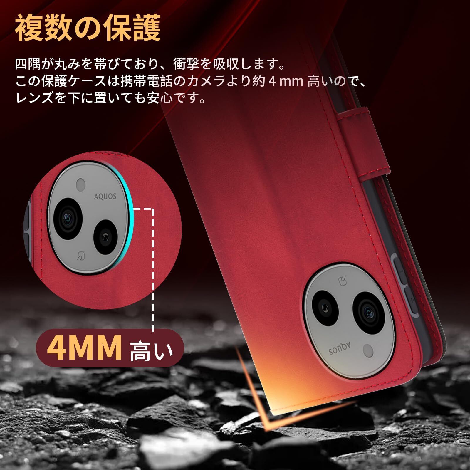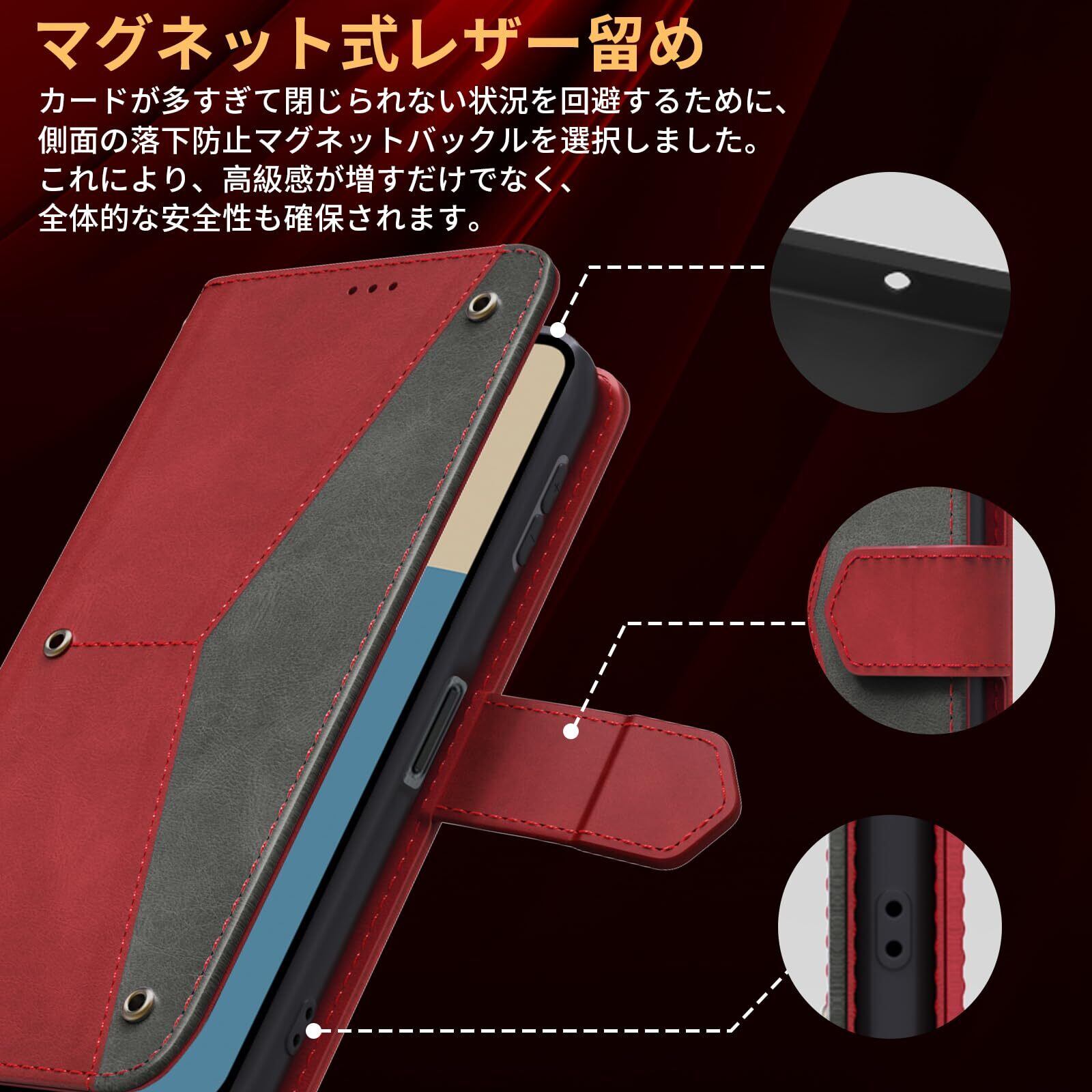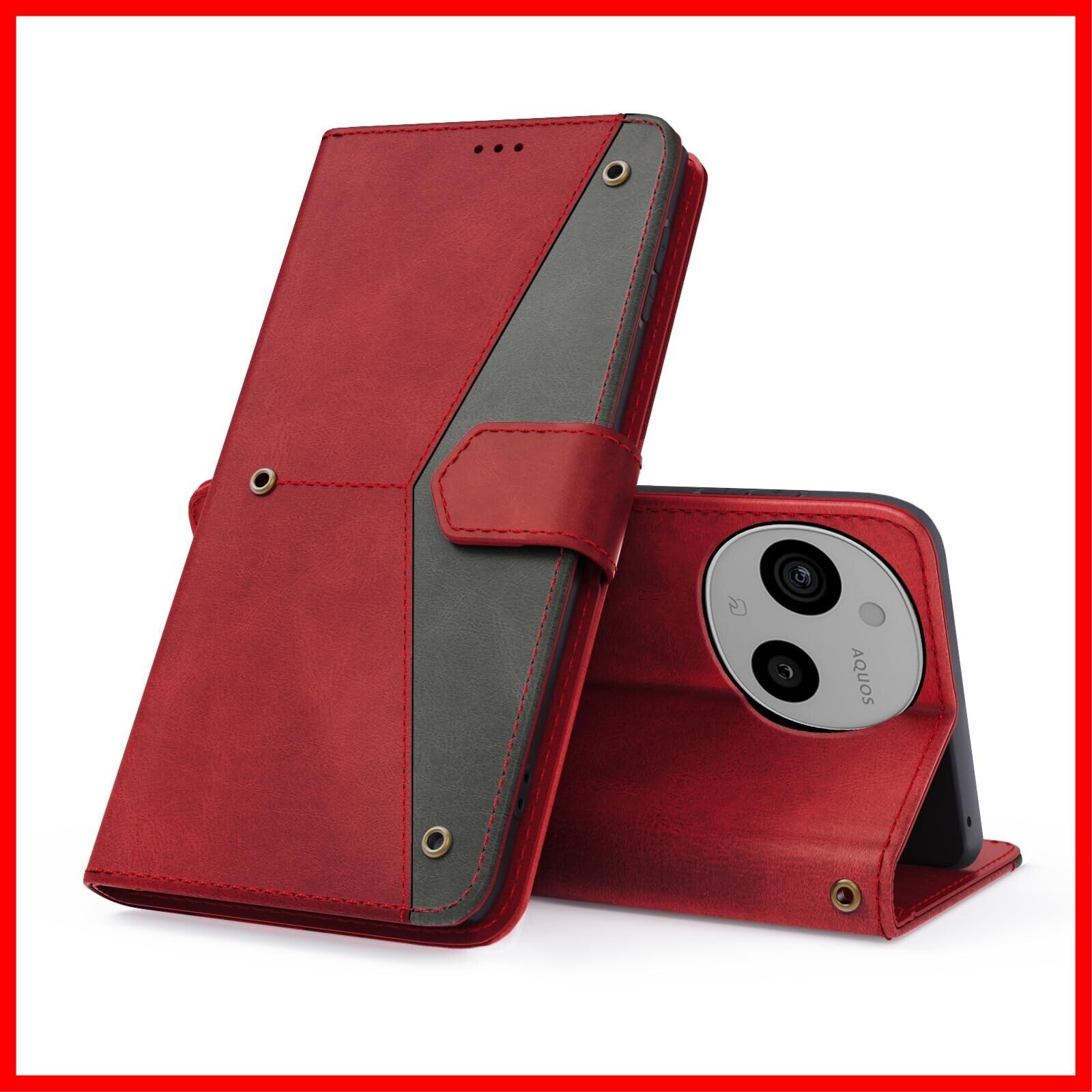 AQUOS sense9 ケース手帳型 財布型 アクオス sense9 スマホケース 耐衝撃 カード収納 スタンド機能 SH-53E SHG14 SH-M29 カバー マグネット開閉 のあるソフトタッチ AQUOS sense9 ケース ストラップホール付き 防水 耐摩擦 シンプル (レッド) | hananoki