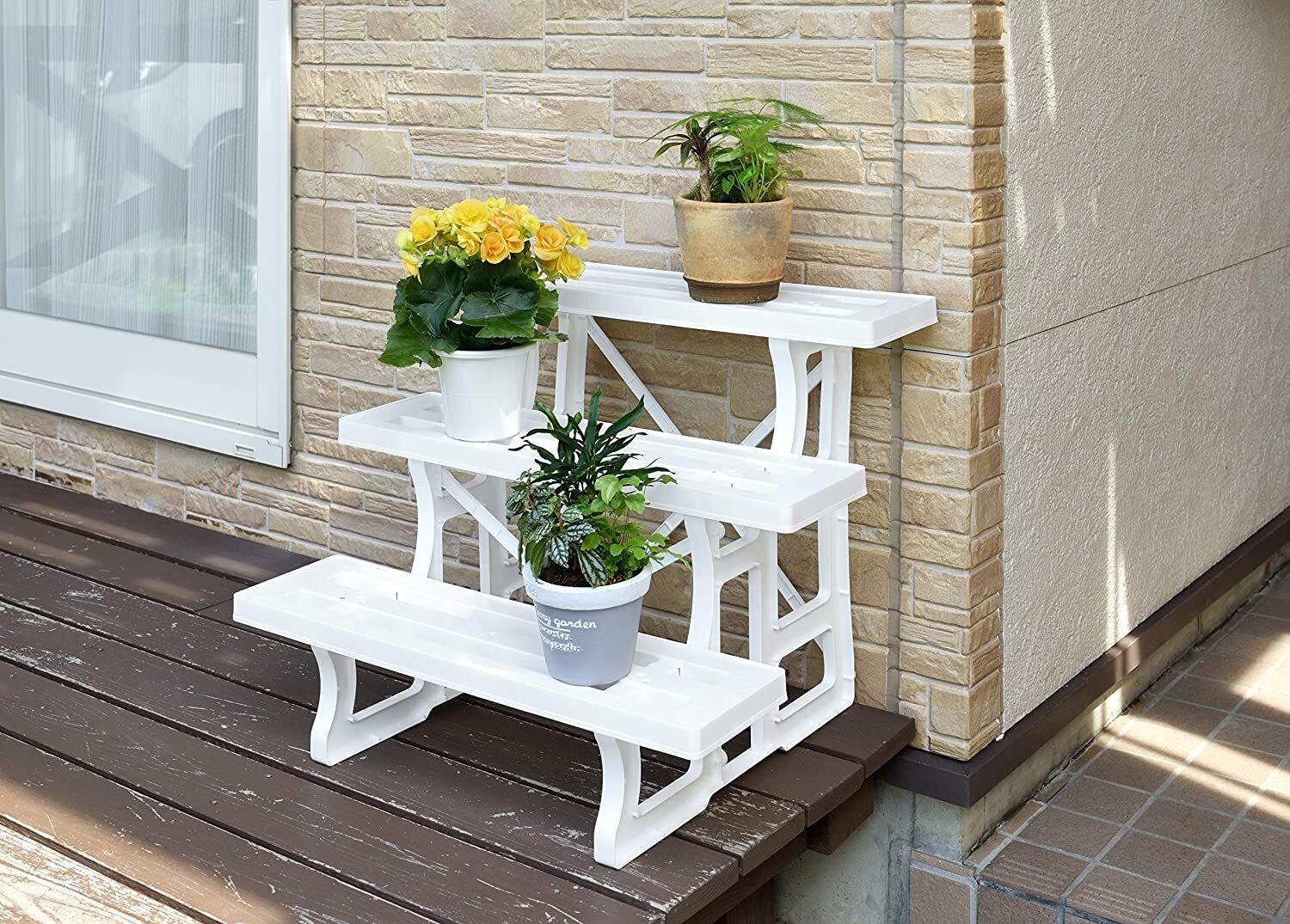 玄関・庭・室内と、様々な場所でお花や観葉植物、小物などを飾る事ができる お部屋や玄関に置き、観葉植物を置けば、癒しの空間を演出できる 2段の棚でお花をすっきりまとめられる プラスチックなので錆びることもなく、組立もとても簡単 耐荷重:1段あたり約6kg