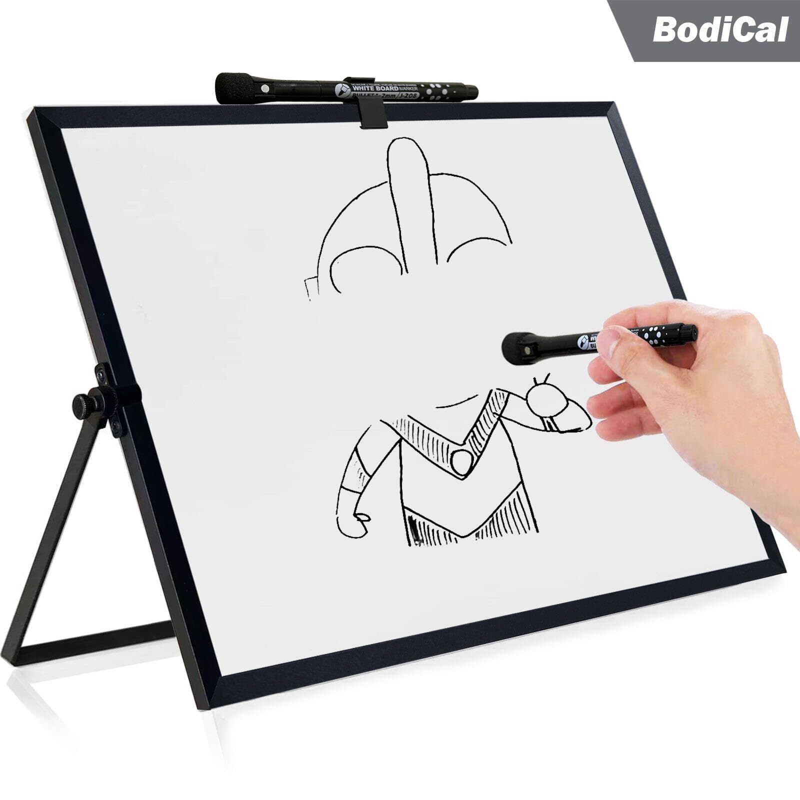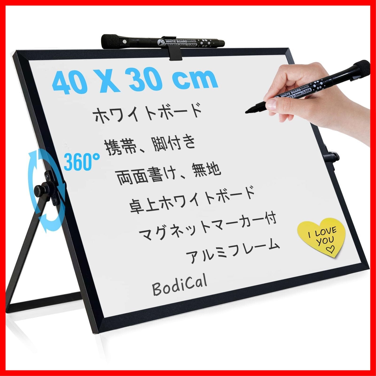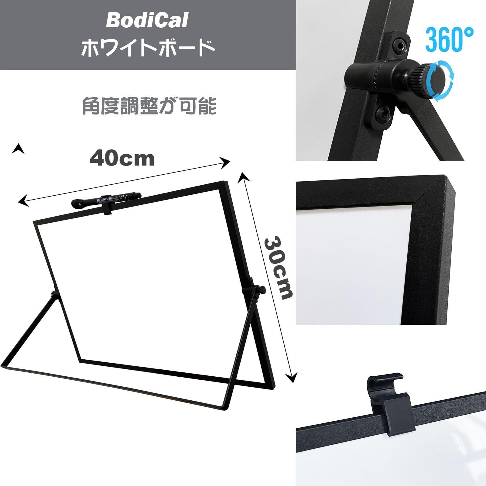 ホワイトボード 自立式ホワイトボード 卓上 マグネットボード アルミフレーム掲示板 無地 両面書け 小型ホワイトボード 壁掛け 回転式 (幅40×高さ30cm)-ブラック