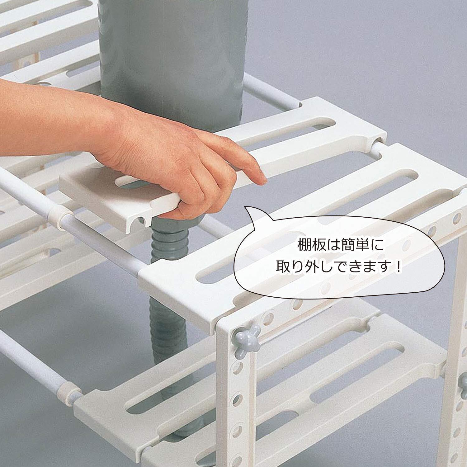 排水トラップを避けて棚が作れます。組立簡単工具がいりません。棚の高さが調節できます。