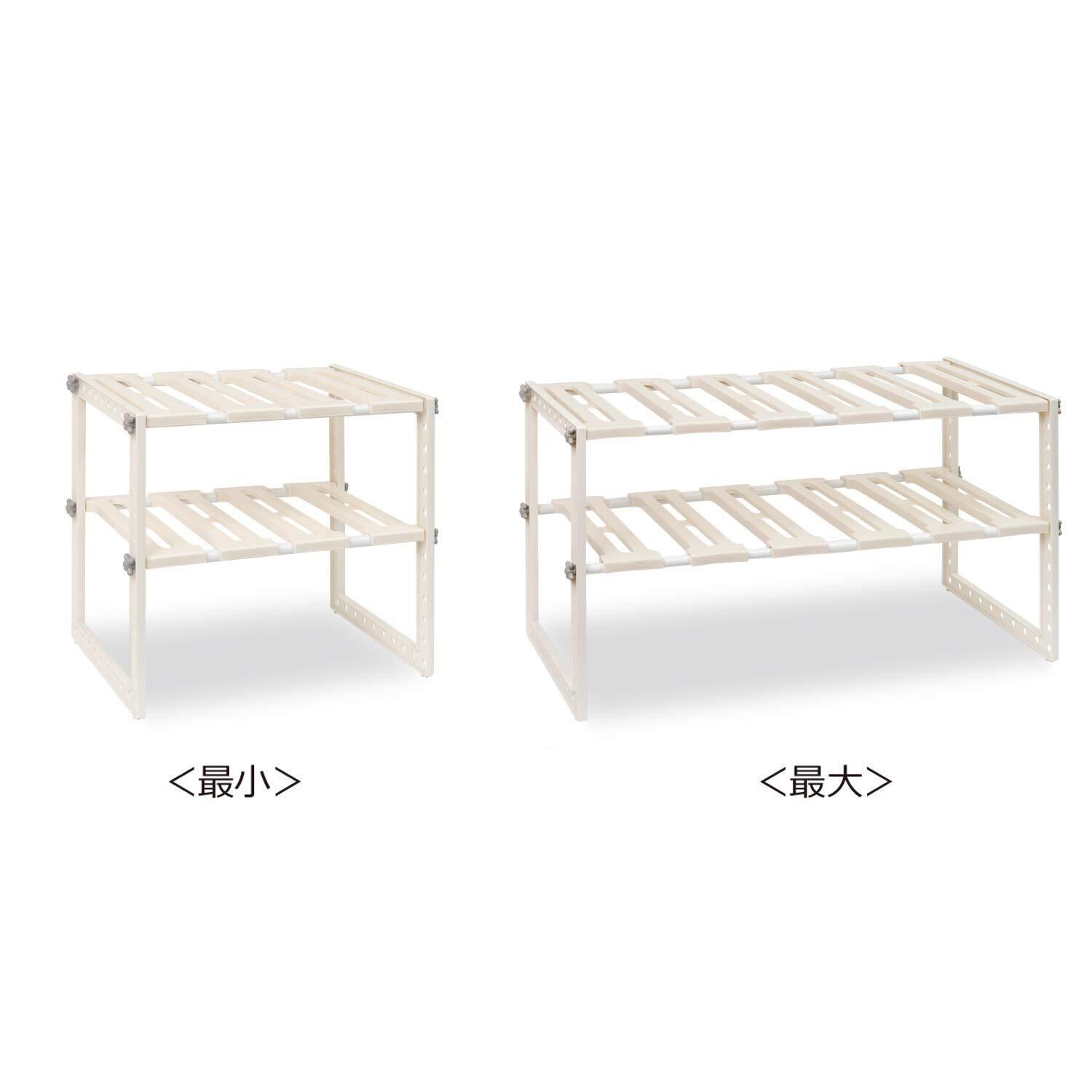 Belca(ベルカ) 日本製 キッチン収納 シンク下フリーラック 伸縮タイプ 幅50~75×奥行30.3×高さ39.8cm ホワイト シンク下収納 2段 棚 VR-EXT