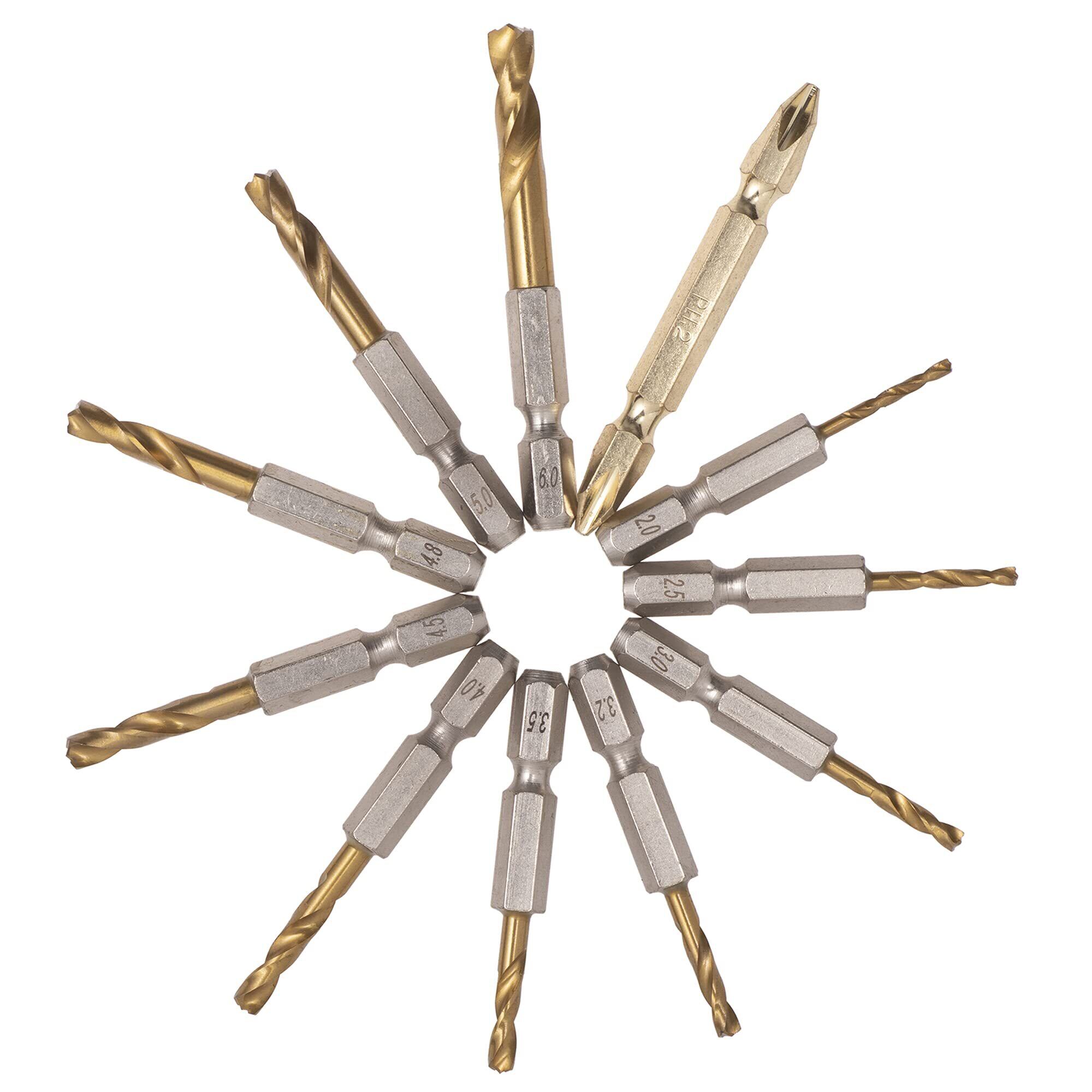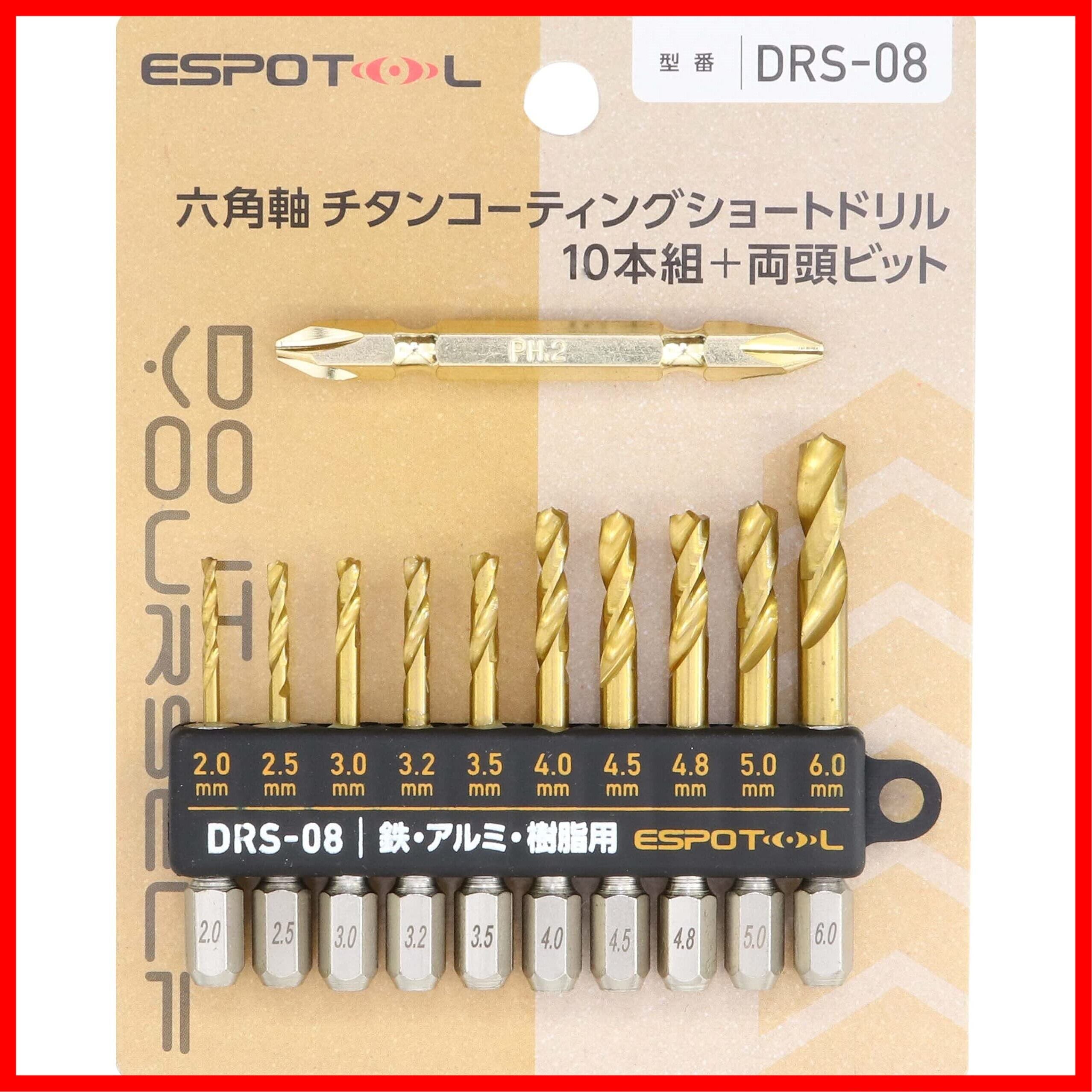 ESPOTOL(エスポツール) 六角軸 チタンコーティング ショートドリル 10本組 +両頭ビット付