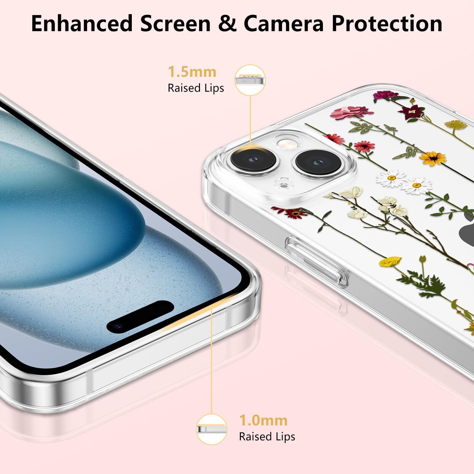 ZTOFERA iPhone 15 用花柄 クリアケース いphone15 おしゃれ かわいい 透明カバー フラワーケース 花 フローラル ソフト シリコーン スマートケース アイフォン15 ケース 韓国 人気 女子 耐衝撃 軽量 iphone15 携帯電話ケース