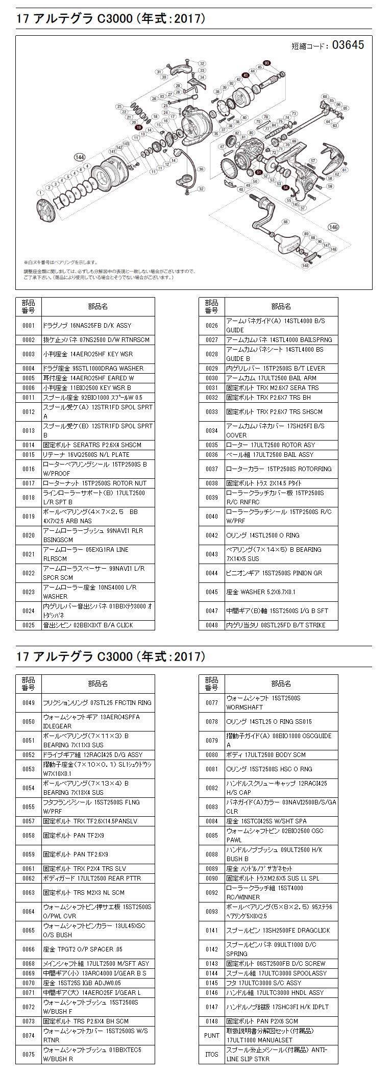 シマノ(SHIMANO) 純正パーツ 17 アルテグラ 各種用 スプール/ハンドル/ドラグノブ/ハンドルスクリューキャップ