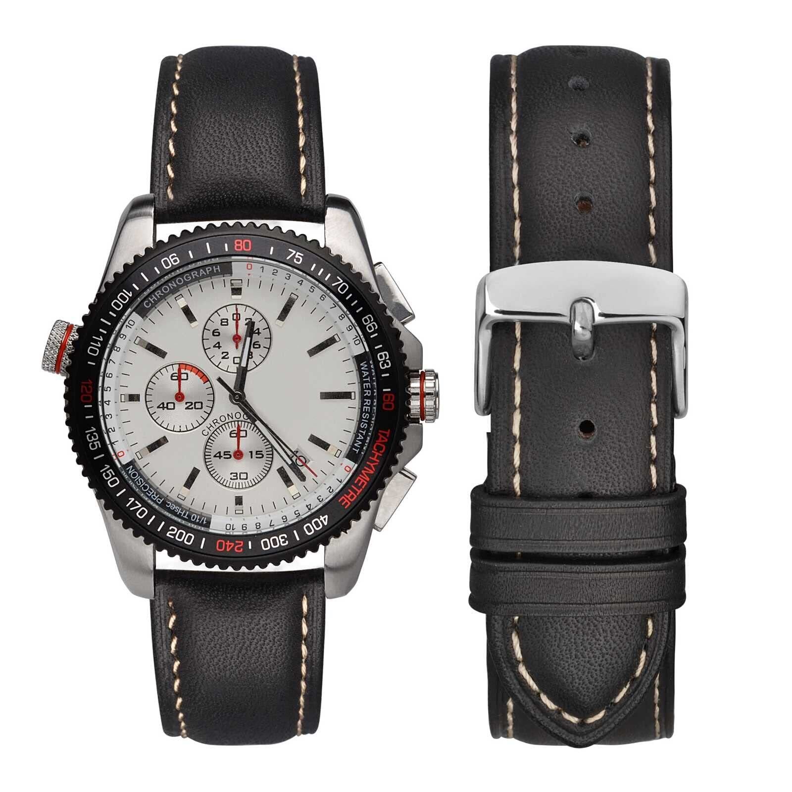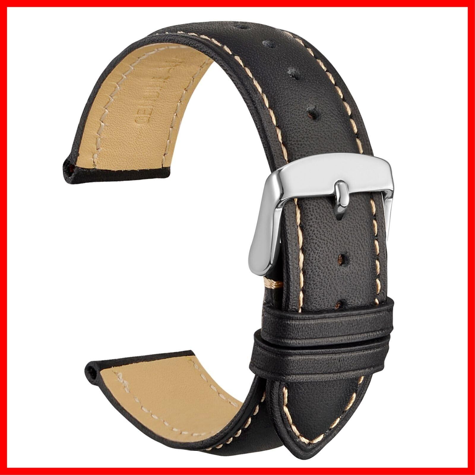 [WOCCI]時計ベルト18mm 時計替えベルト ヴィンテージ 腕時計バンド 本革(ブラック/コントラストステッチ)調整工具とバネ棒付