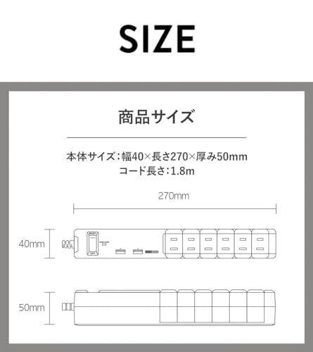 特徴 オン/オフスイッチ, USBスロット, 回転式コンセント, サージ保護