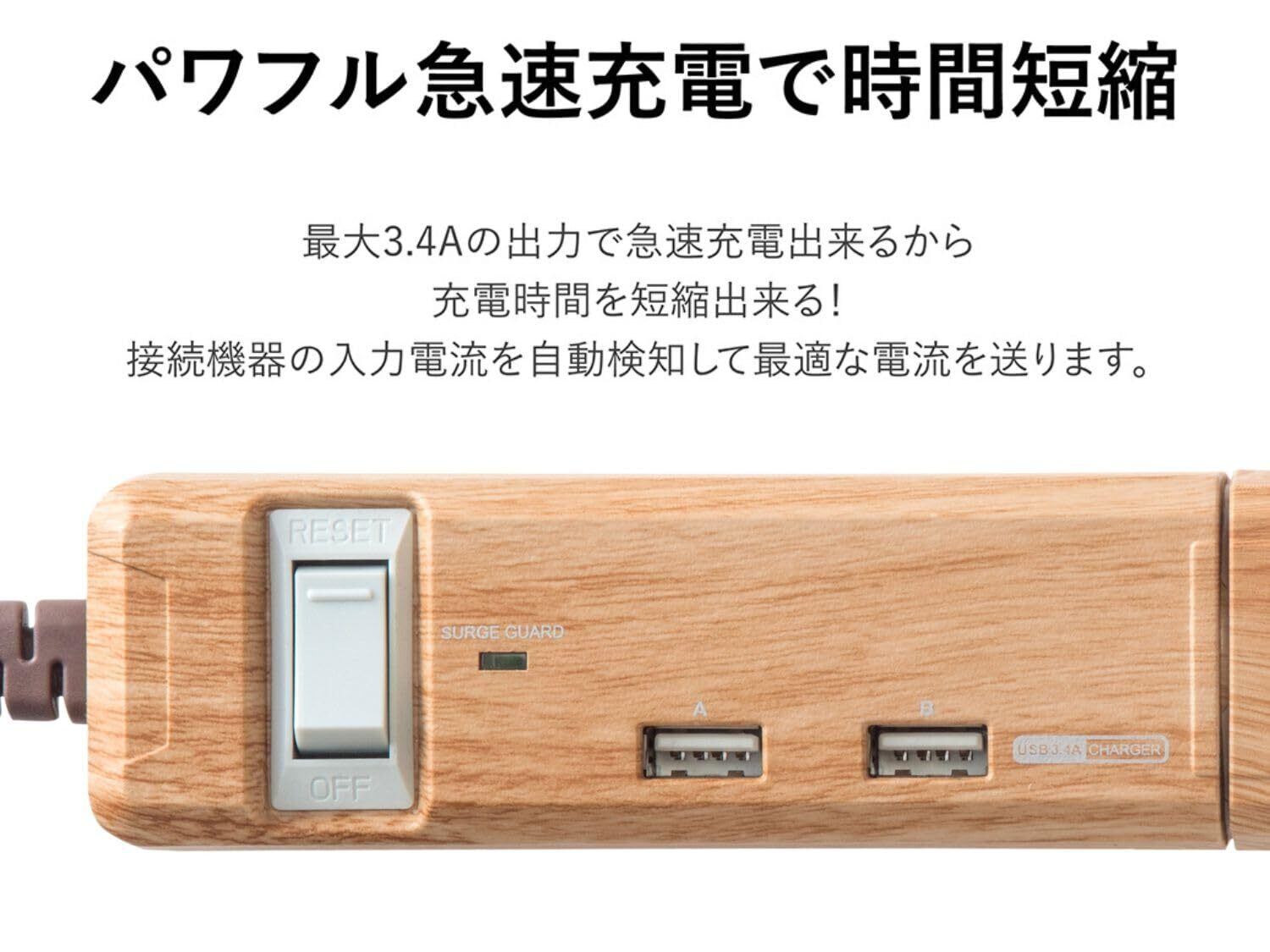 Fargo TAPKING 電源タップ USB 3.4A Type-A 2ポート クルッと回転 (ベージュウッド, 3.4A AC12個口 1.8m)
