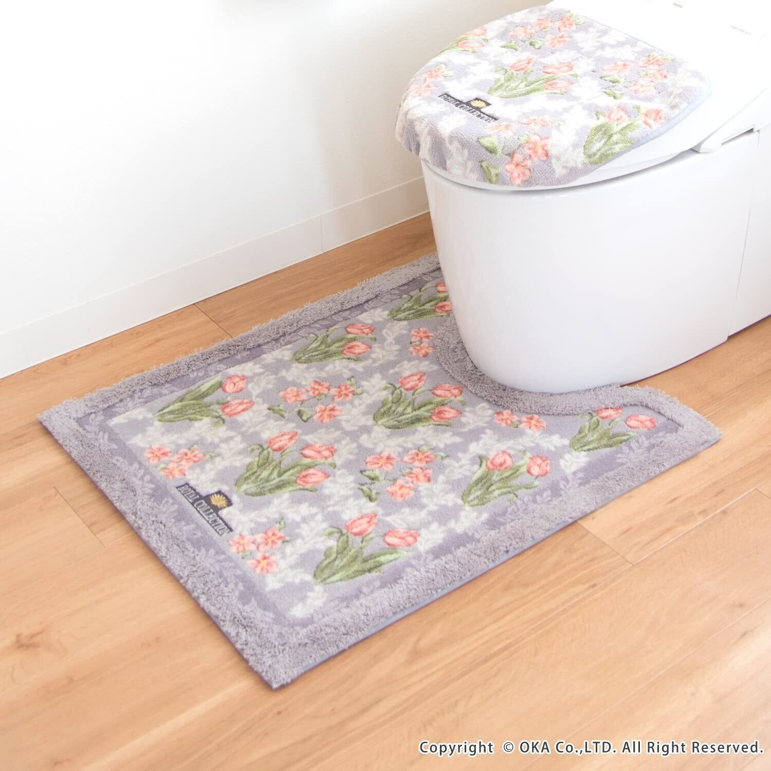 オカ(OKA) ロイヤルコレクション アーツ トイレマット 約75cm×63cm(ロングサイズ)(首下 約57cm) グレー (洗える 北欧 おしゃれ)