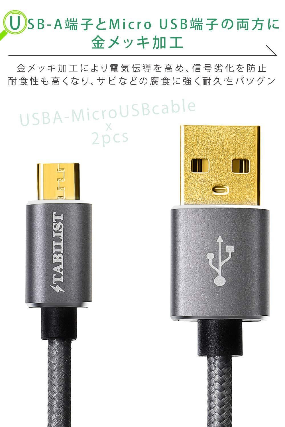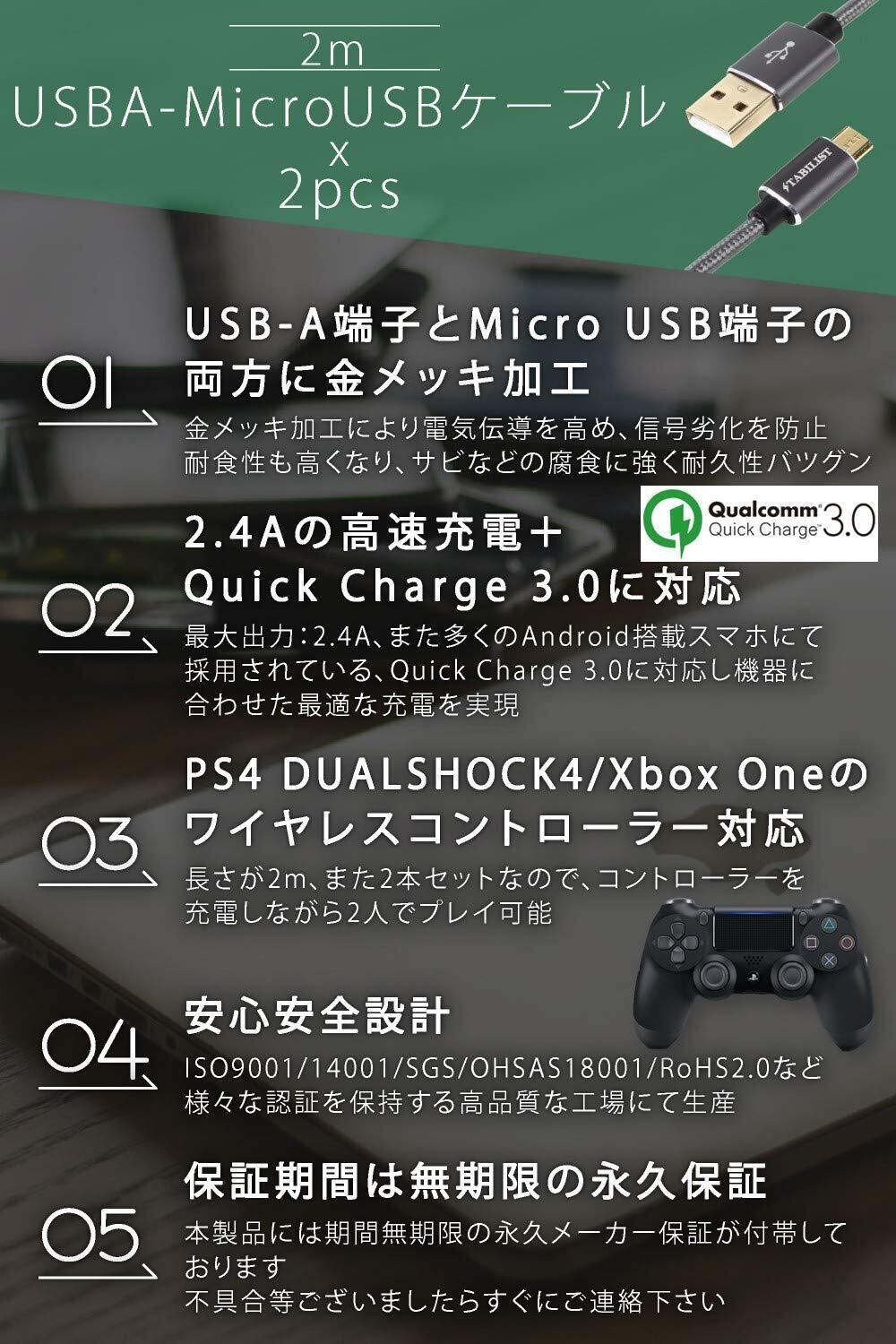 卸を通さないことによりリーズナブルな価格を実現しました 長さ: 2m x 2本組 USBA (標準USB) to Micro USB ケーブル 金メッキ加工 急速充電 PS4 Xbox Oneなどのコントローラー対応