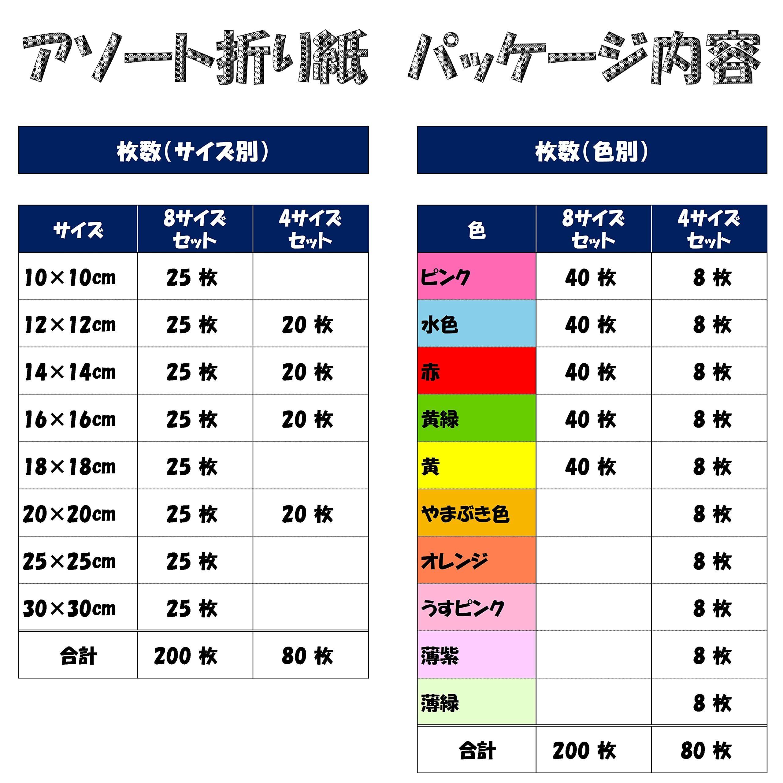 O.M.C TOKYO アソートパック 折り紙 両面 同色 200枚 (5色×5枚×8サイズ組) アソートおりがみ サイズいろいろ