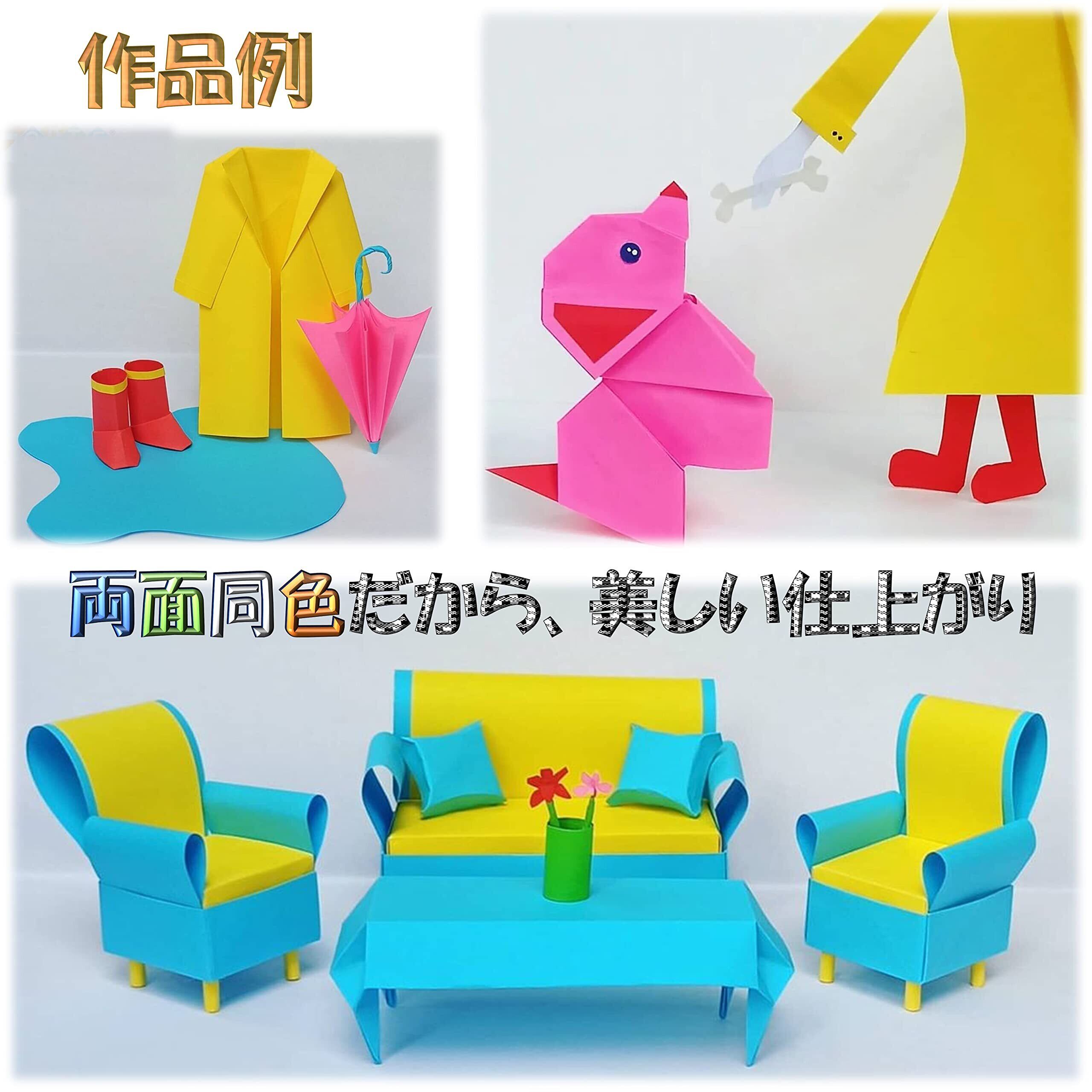 【特徴】両面が同じ色の折り紙を単色パックでお届けします。通常の折り紙と異なり、裏面の白い面が無いため、作品が美しく仕上がります。