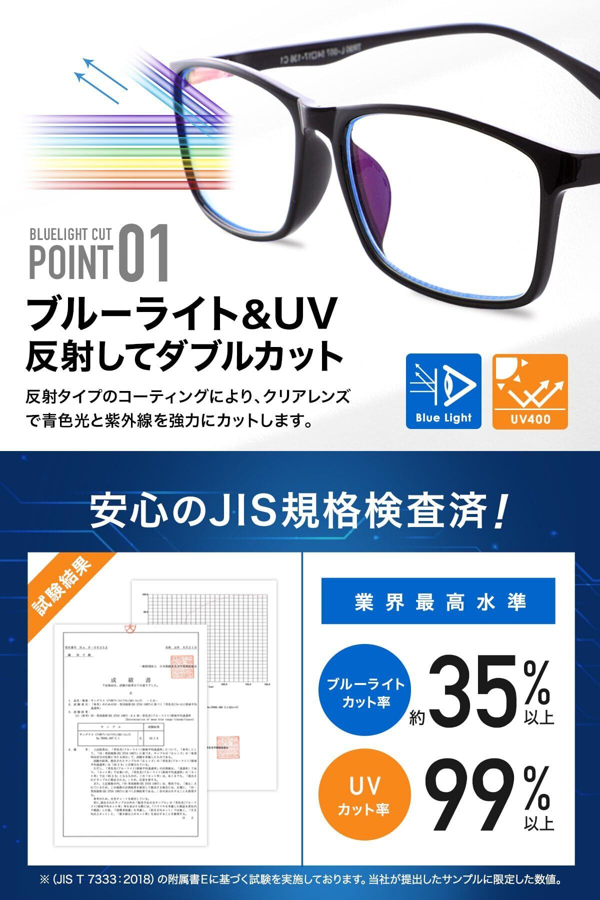 ブルーライトカット メガネ PCメガネ部門 三冠達成!!! 年間生産数12万本突破!!日本国内検品で徹底した品質管理!工場と直接連携しローコスト・高品質を実現!JIS日本規格 日本眼鏡普及光学器検査協会にて検査済み!
