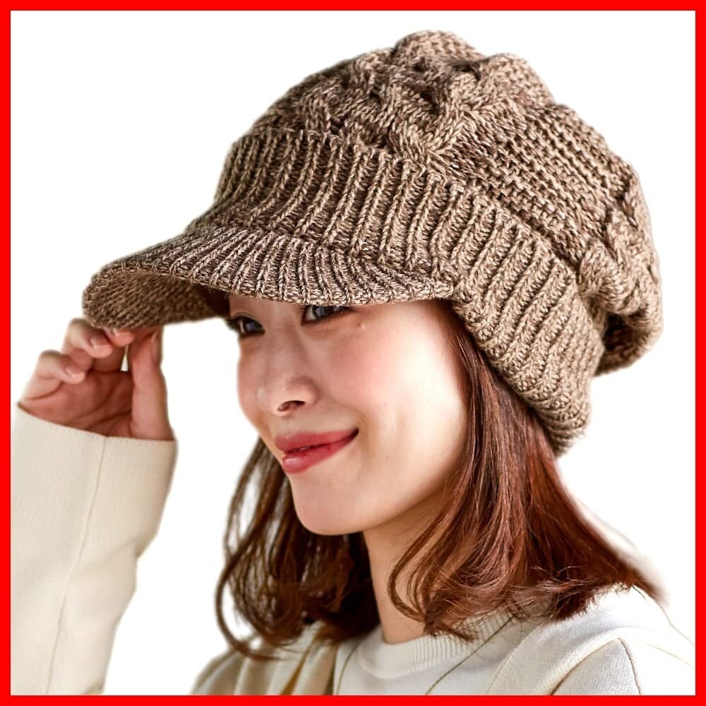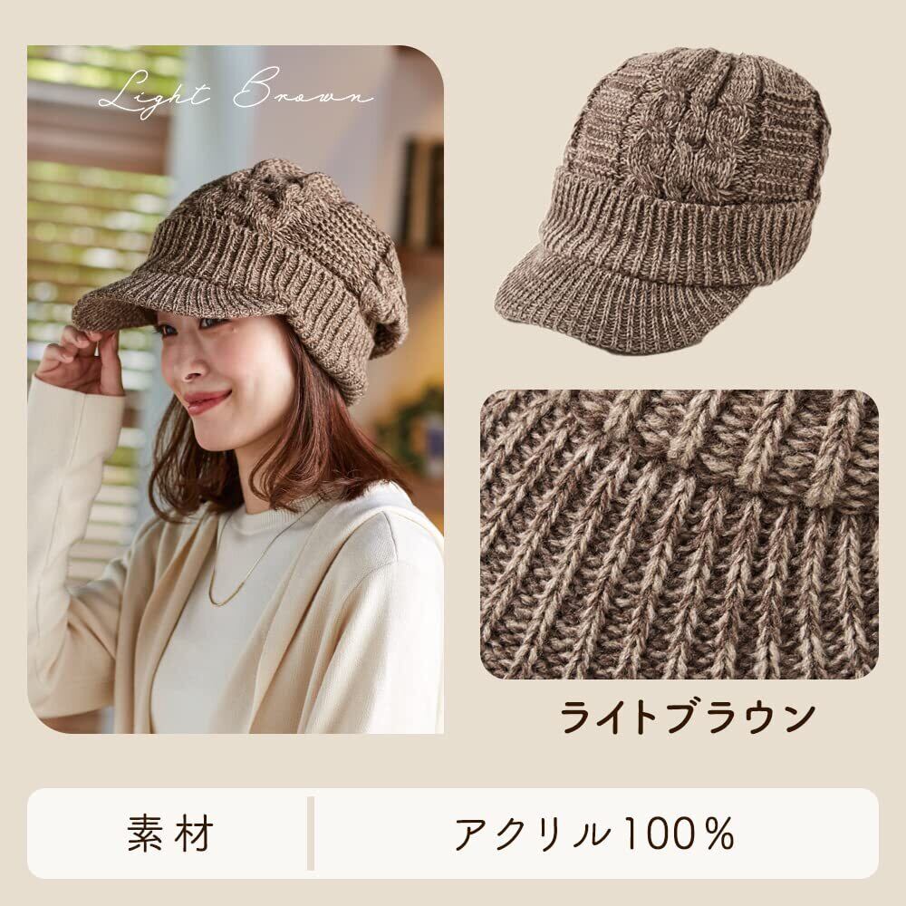 【耳まであったか】ミックス感のある糸でざっくり編まれた、ふんわりシルエットがかわいいツバ付きのキャスケット風ニット帽。いつもの洋服にも合わせやすいデザインでおしゃれに寒さ対策!