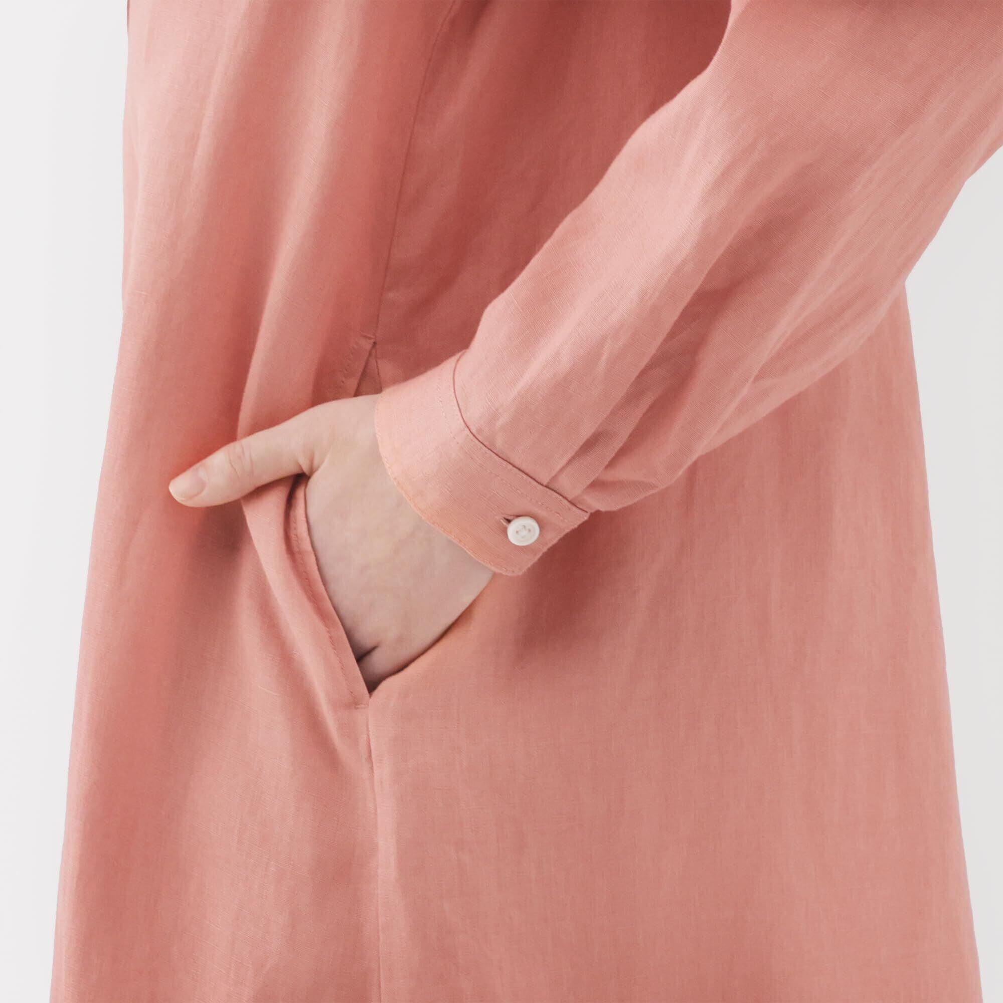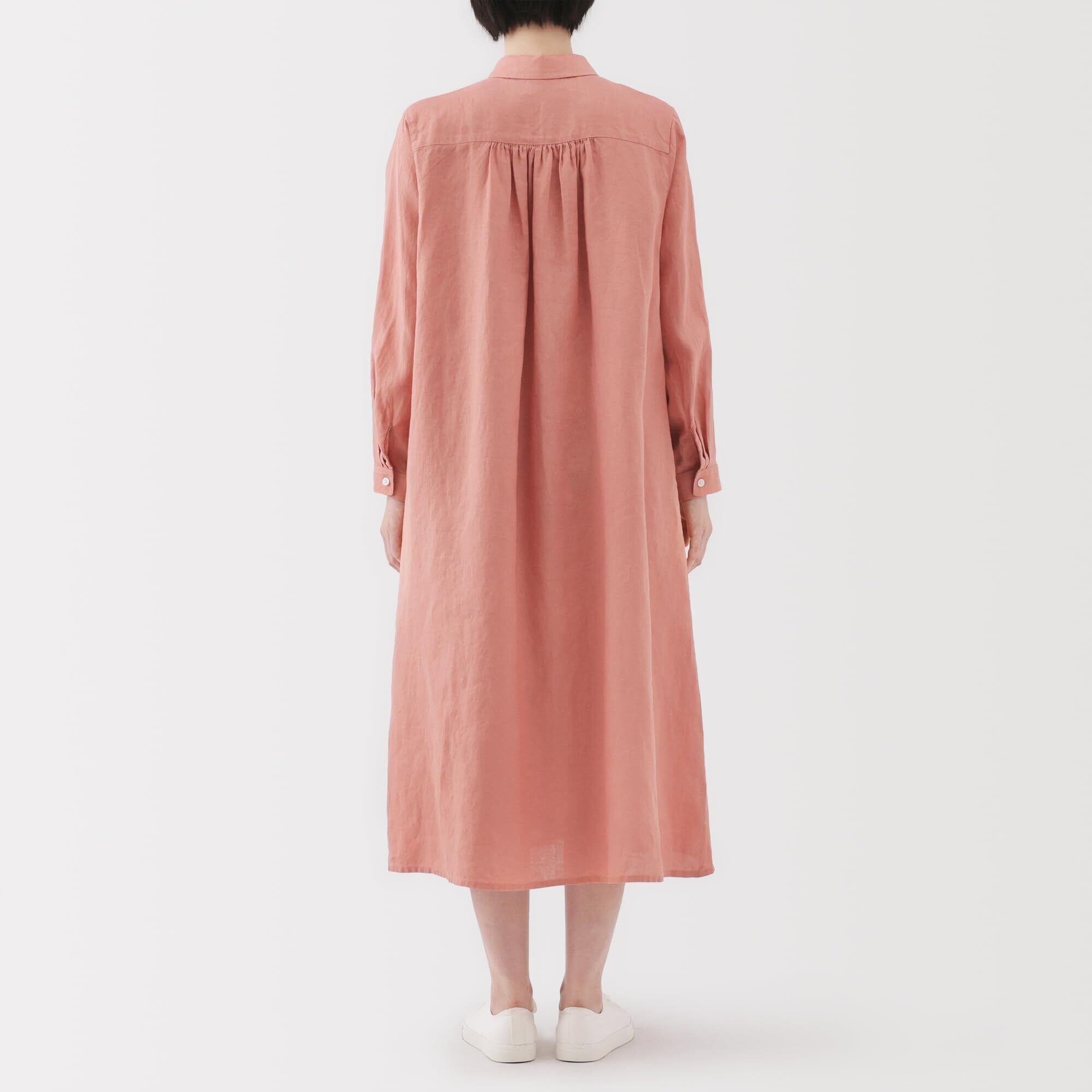 無印良品 ワンピース婦人 リネン 洗いざらし長袖シャツワンピースレディース